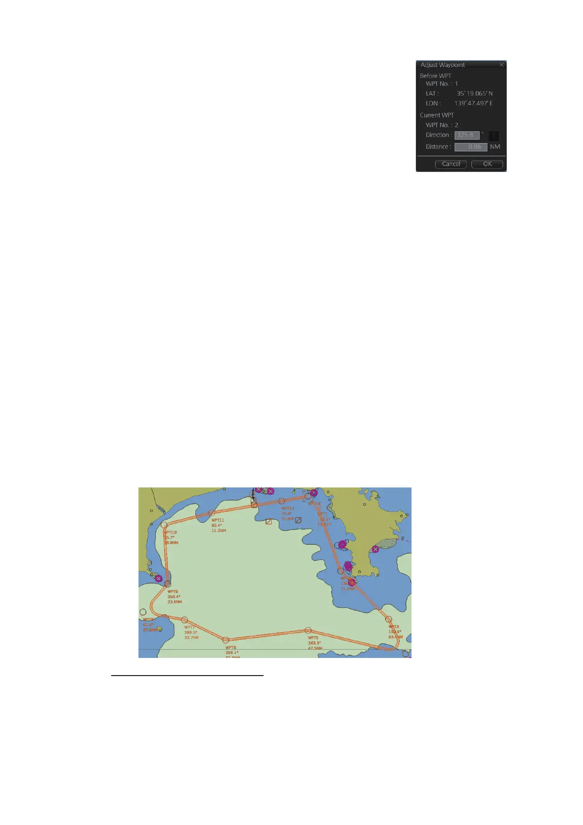 Note 2: The bearing and range of the waypoint can be ad-