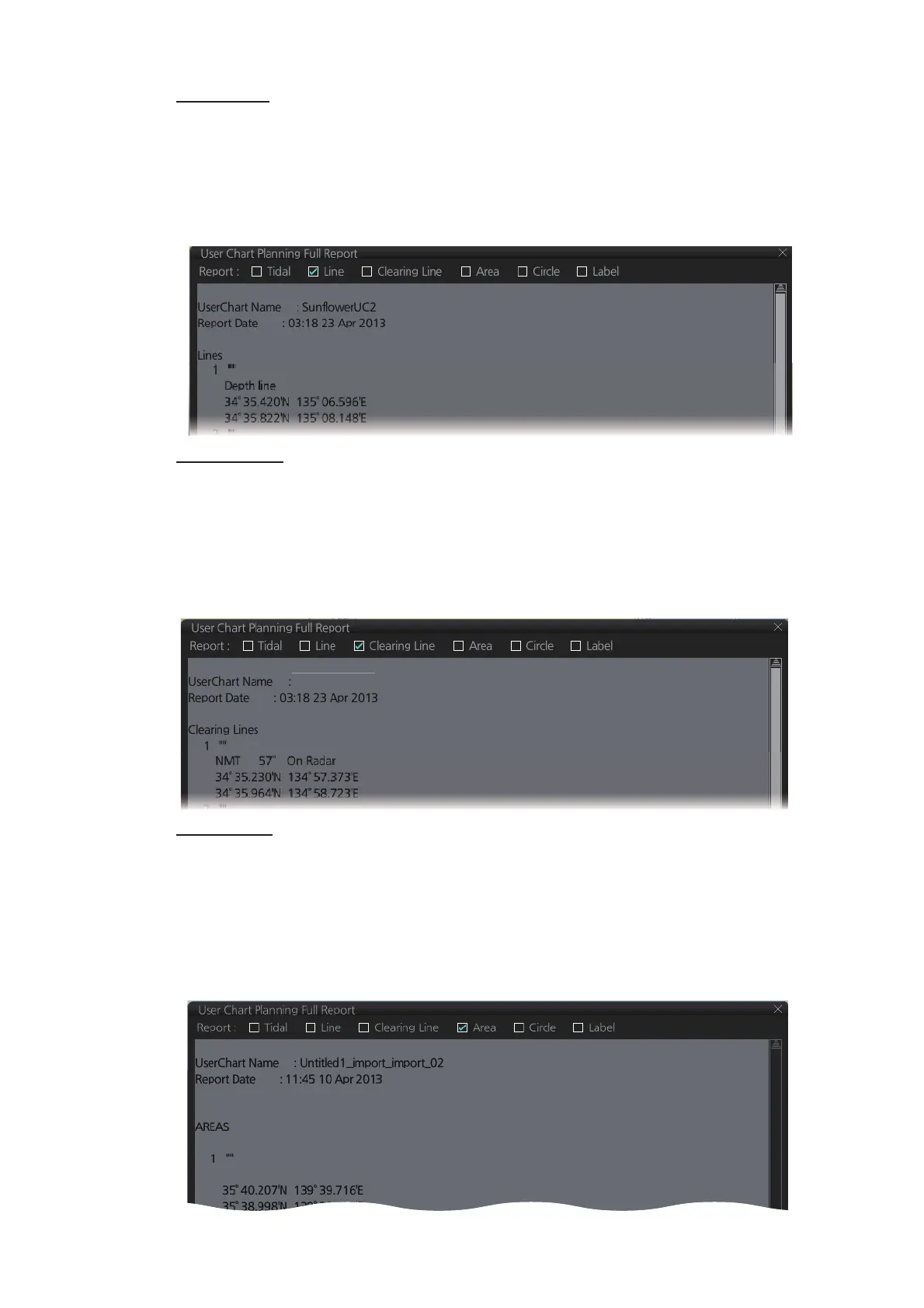 • Where a check mark is input in the column for [Radar], [Danger] or [Notes] on the [Us-