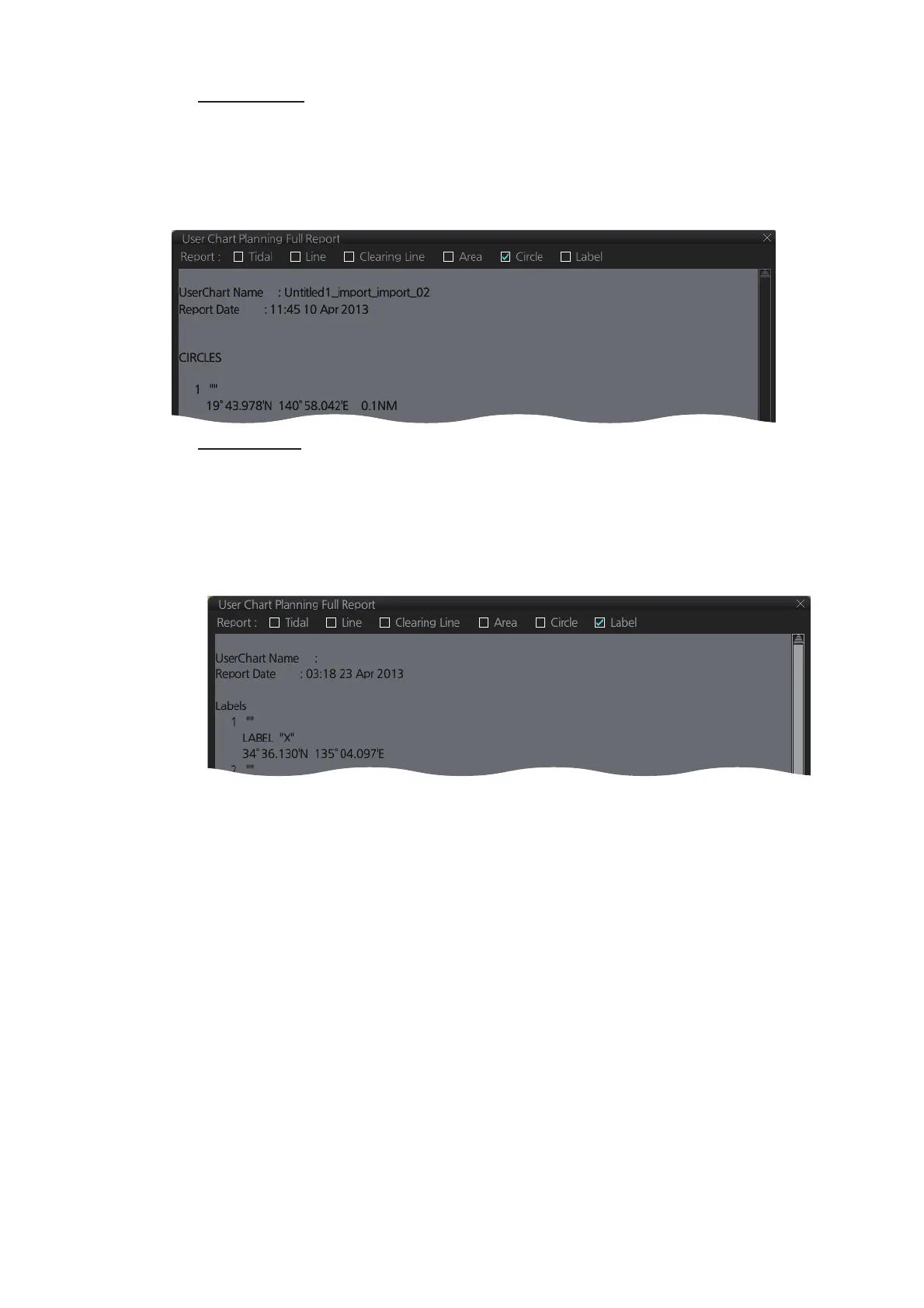 • The position and radius of circles drawn on a user chart.