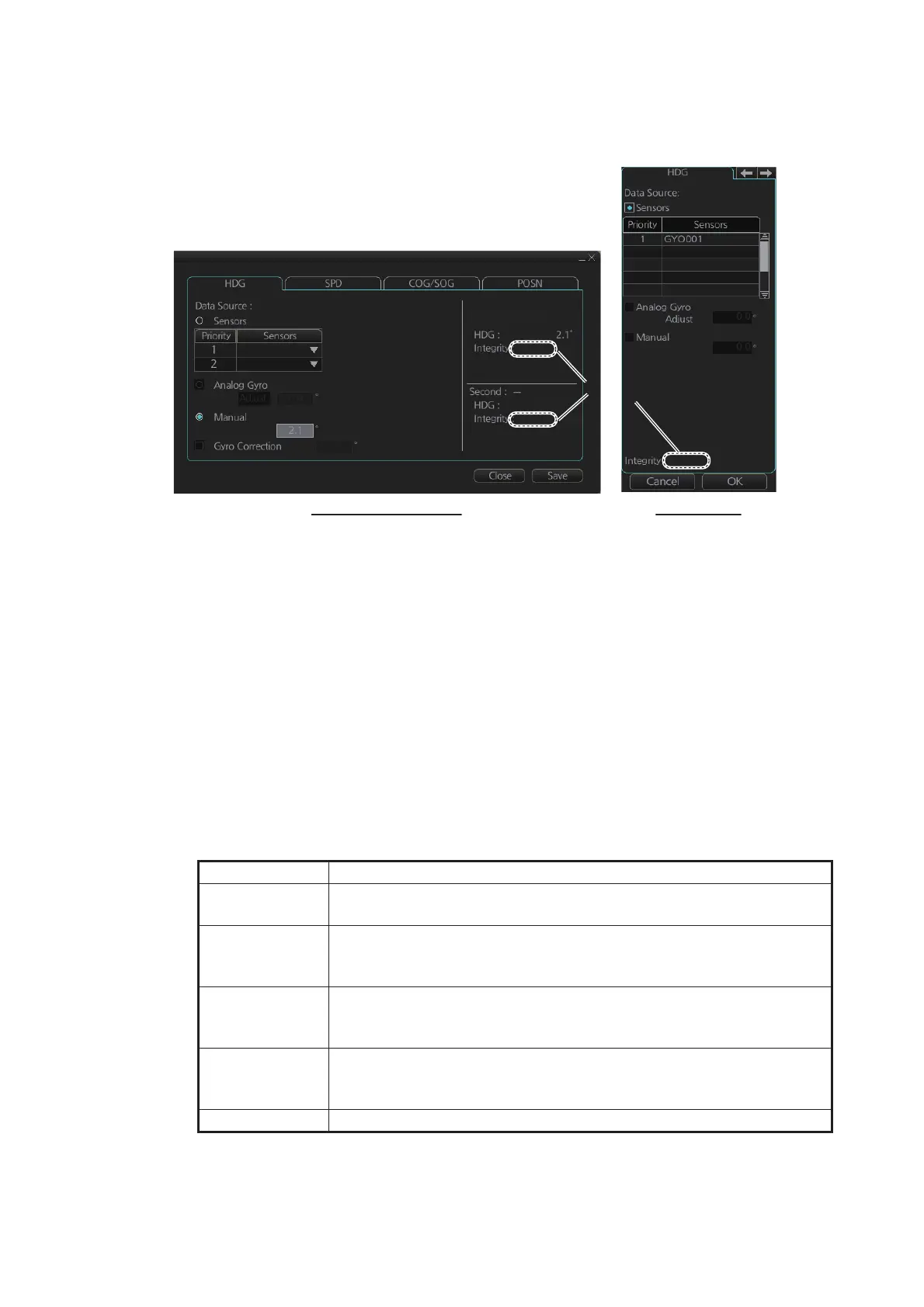 • Comparison with a COG sensor (used only if other heading sen-