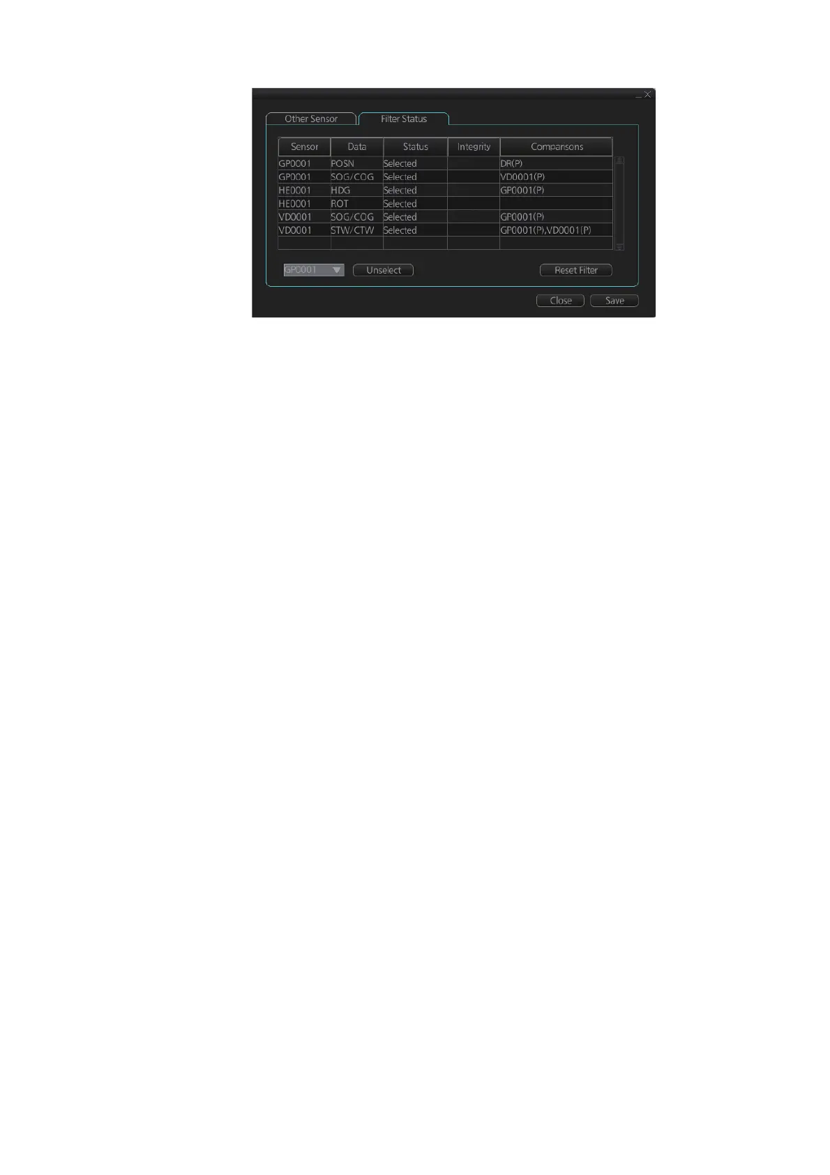 • [Unselected] (sensor not used in filter)