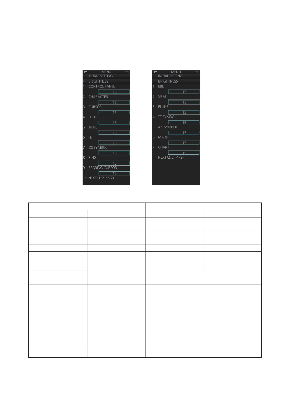 [BRIGHTNESS] menu, page 1 [BRIGHTNESS] menu, page 2