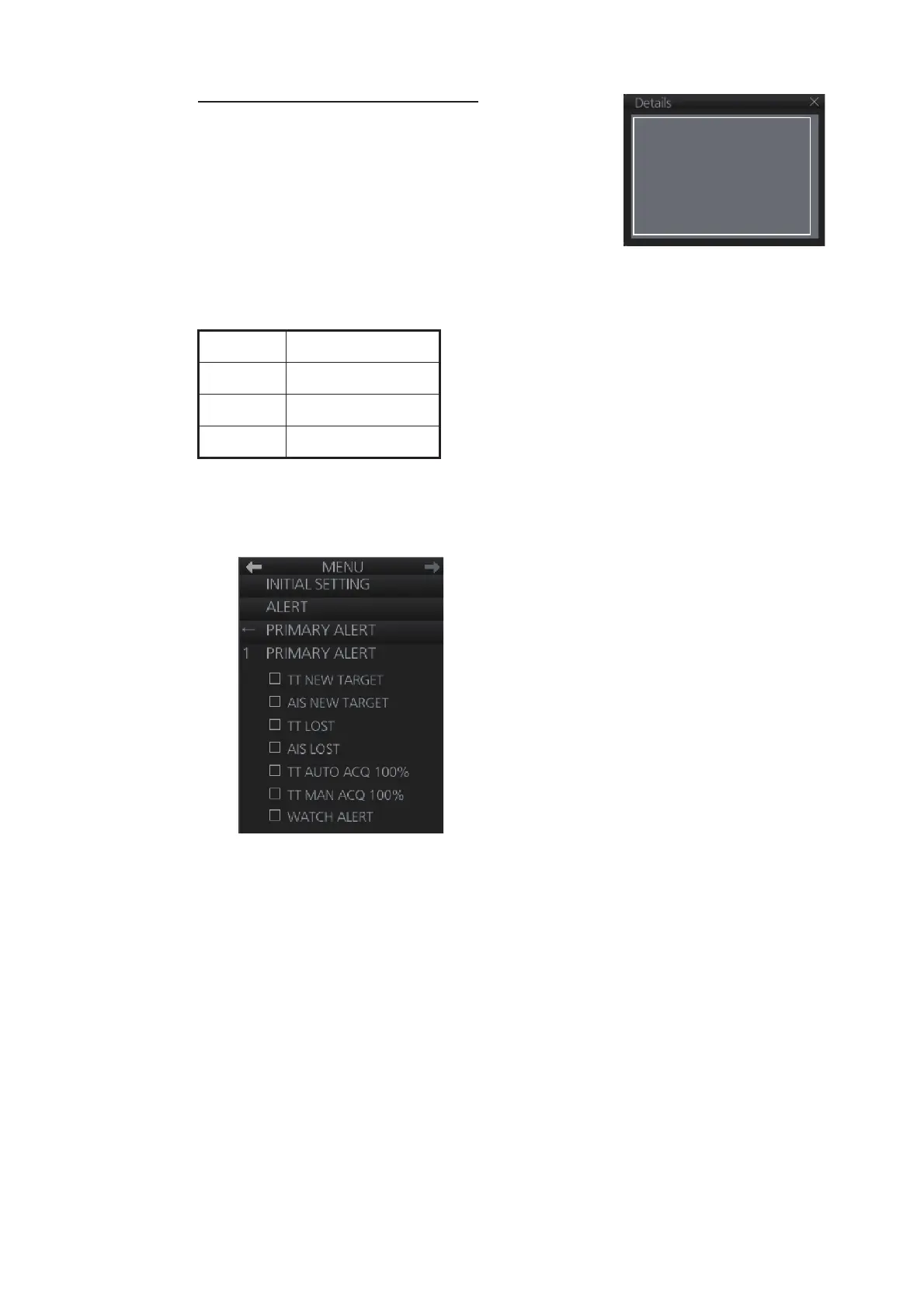1. Open the menu then select the [8 INITIAL SETTINGS] and [4 ALERT] menus.