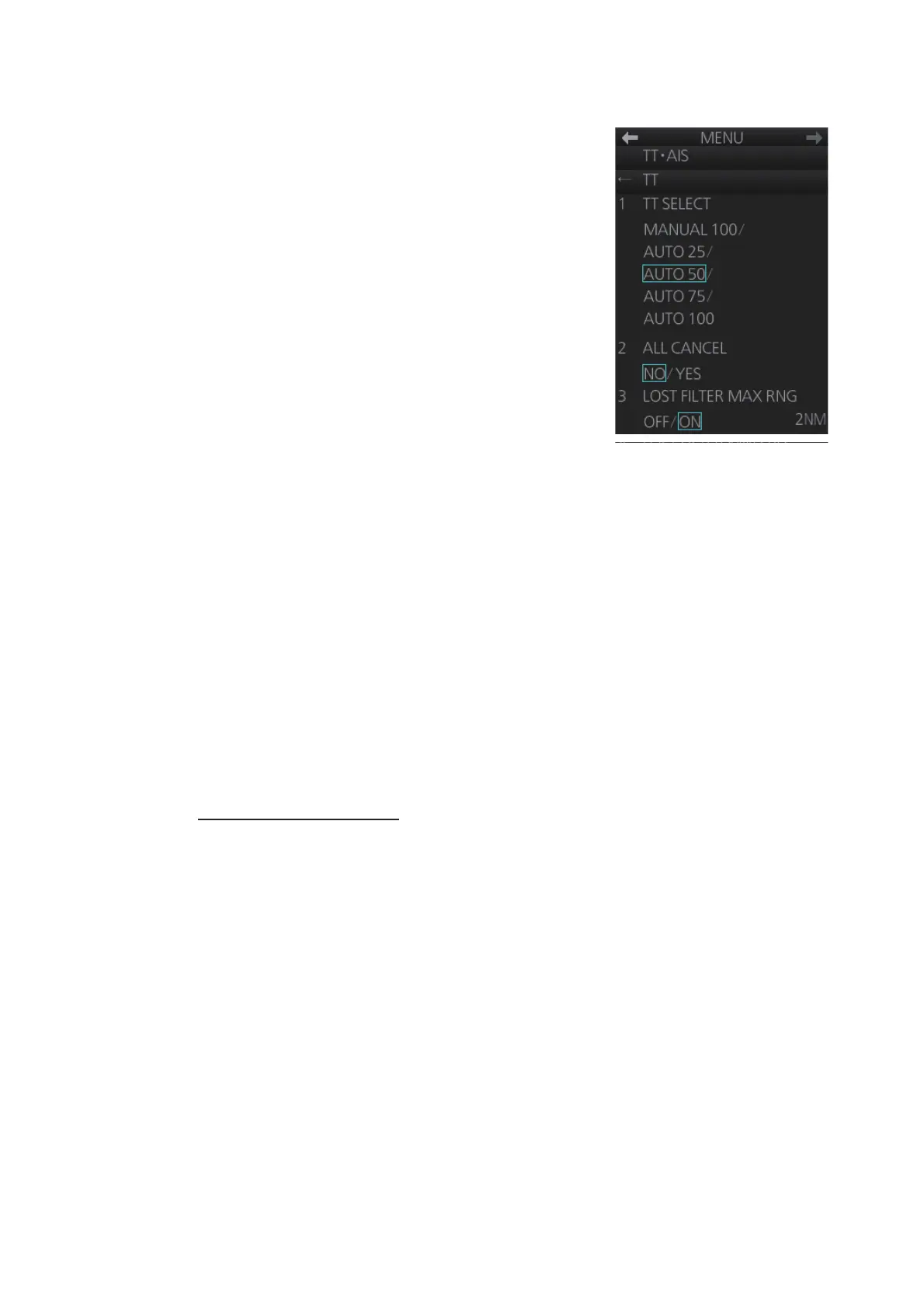 speed. Any TT lost targets slower than this setting will not trigger the TT lost target