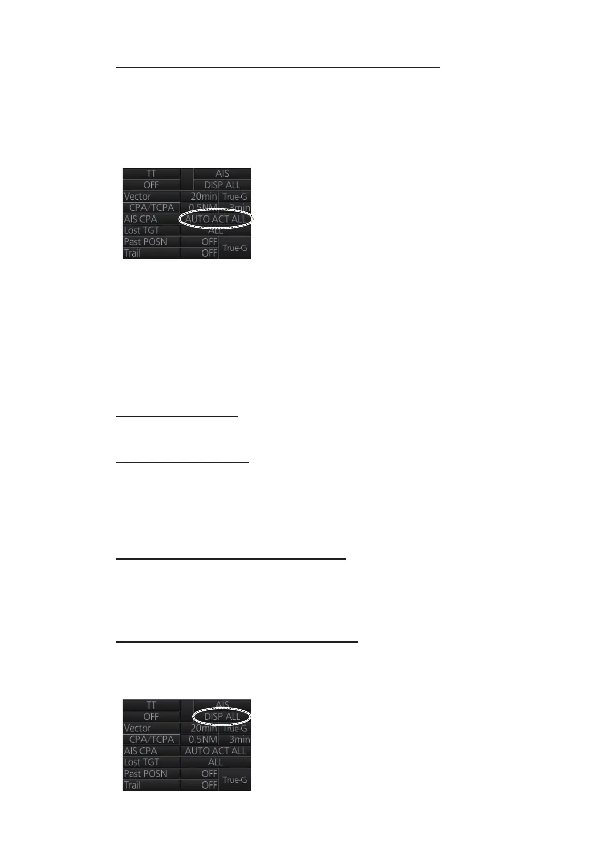 [AUTO OFF]: Disable automatic activation of AIS target by CPA.