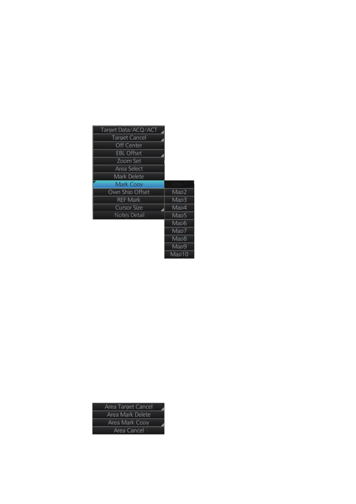 5. Click [Area Mark Copy] then click the map file no. where to copy the marks and