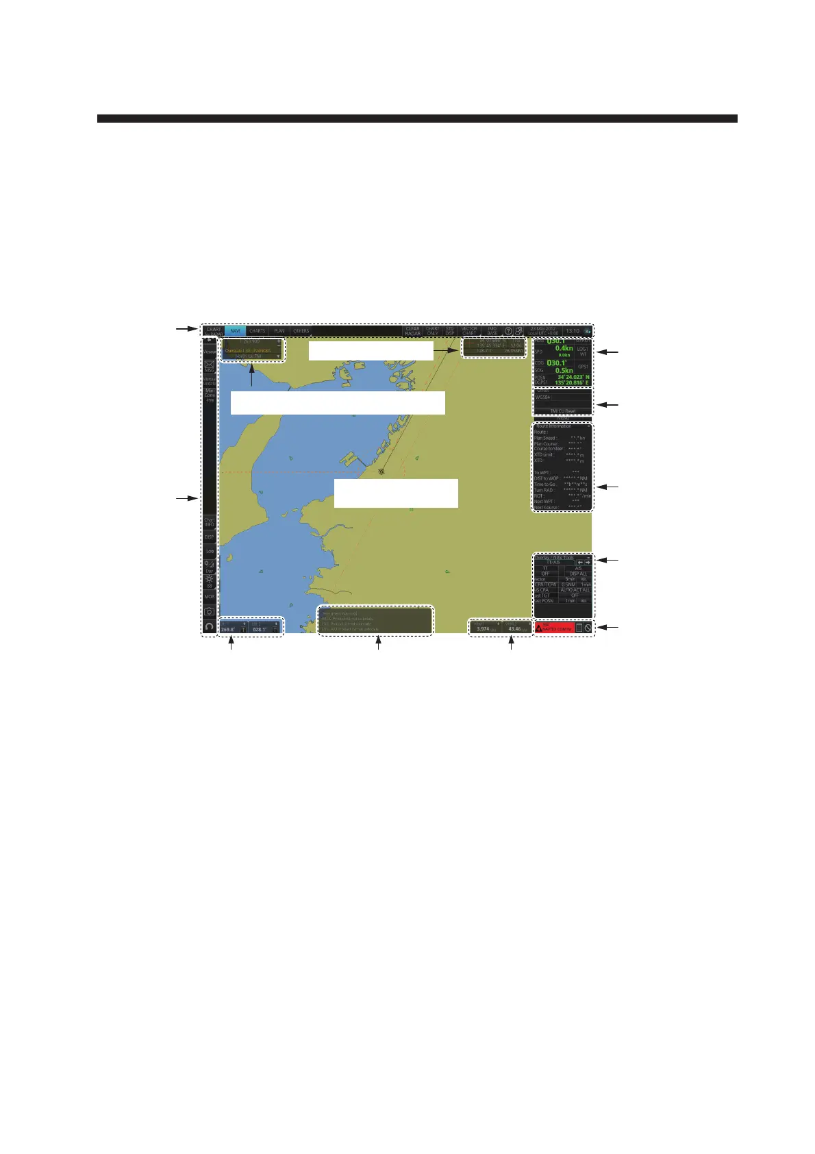 • The Status bar provides for selection of display mode, chart format, IMO chart display; one-click