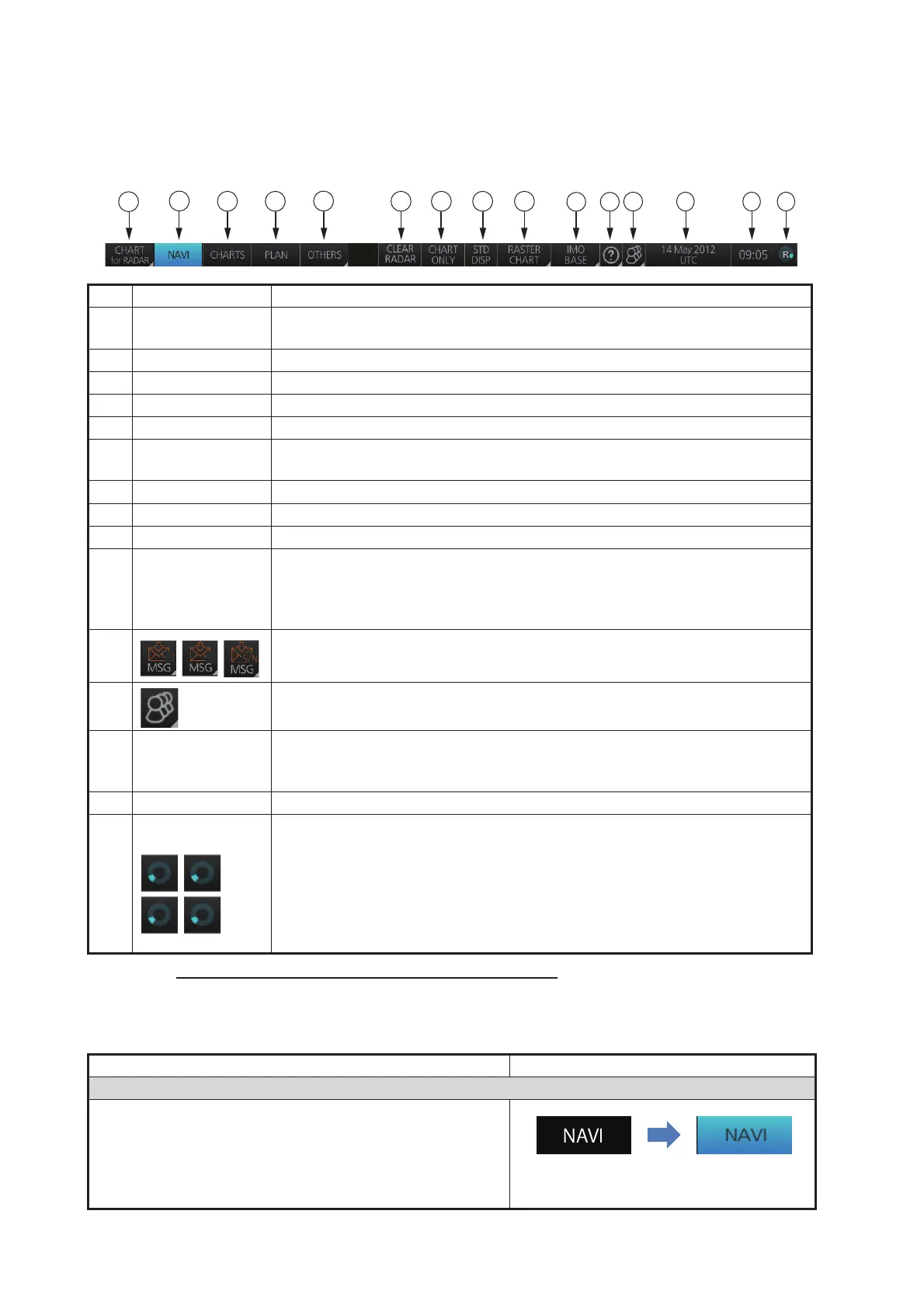 The Status bar mainly provides for selection of display mode, chart type and IMO chart
