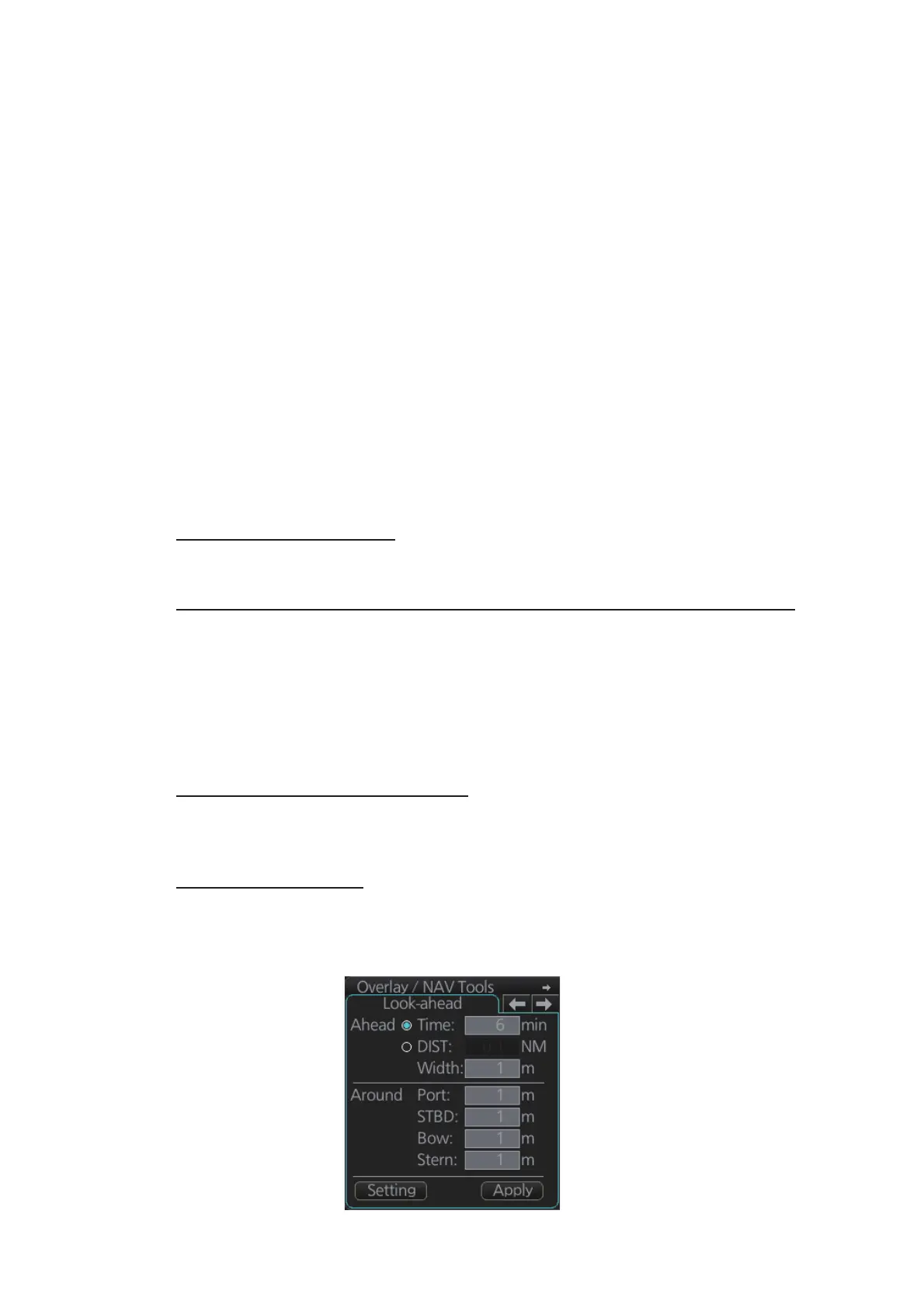 Set chart alert areas suitable for your coming voyage, on the [Look-ahead] page in the
