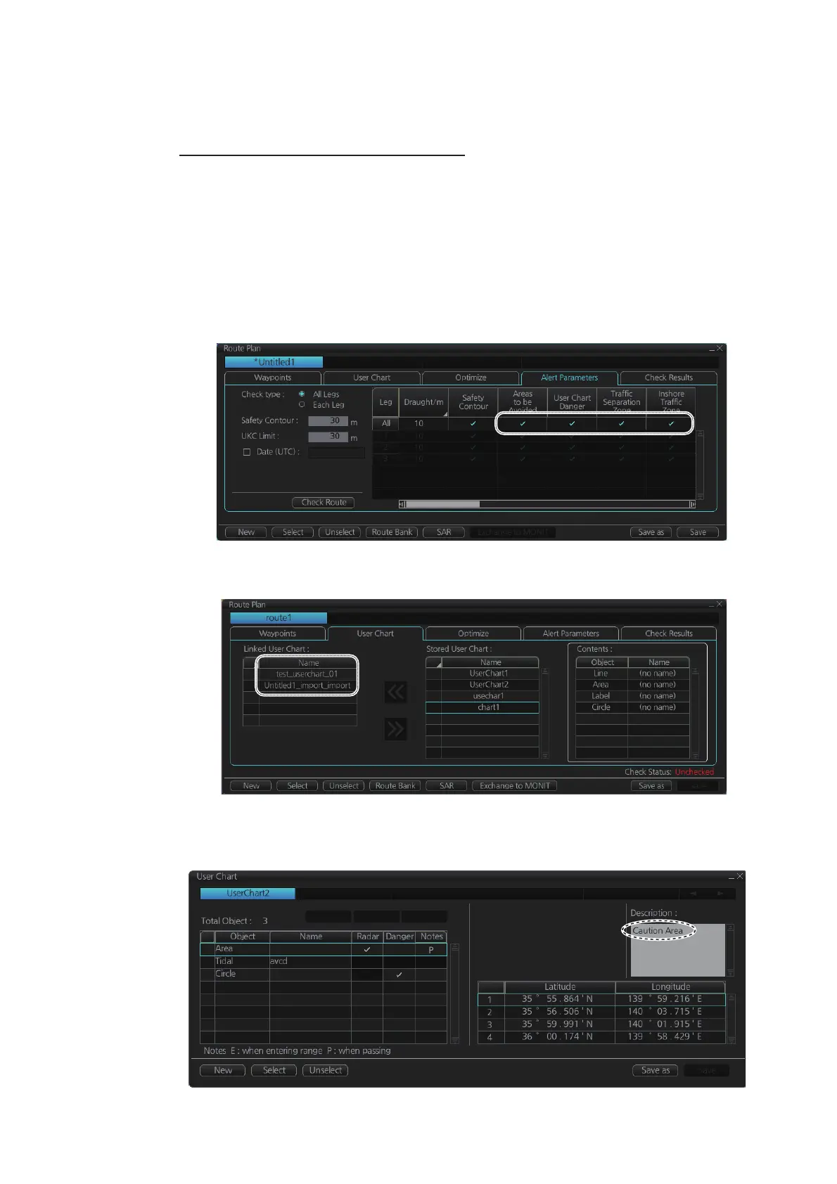 route, on the [User Chart] dialog box (click the [Planning] button then click the [User