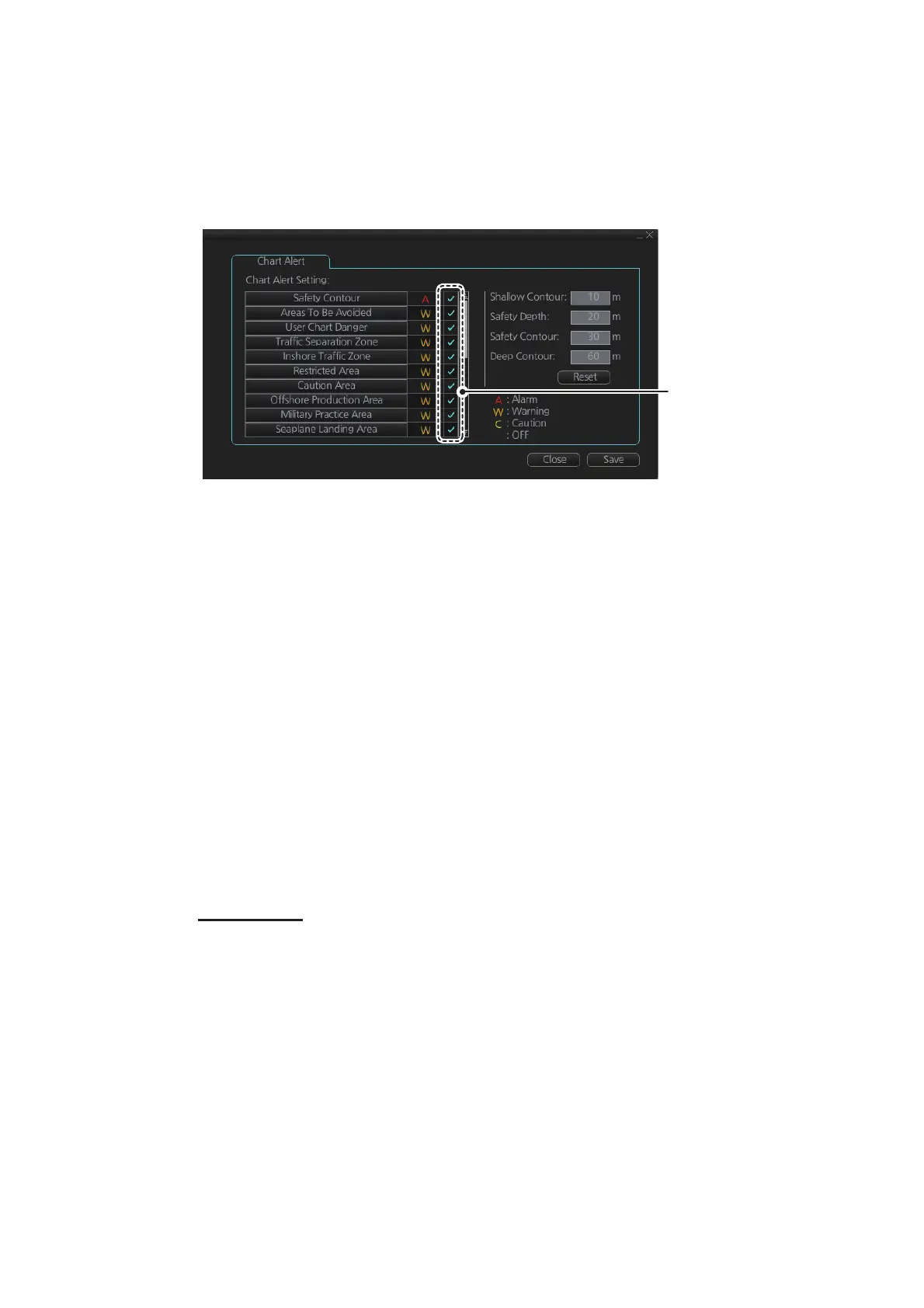 the given chart object. [Safety Contours] is fixed to “A” (Alarm).