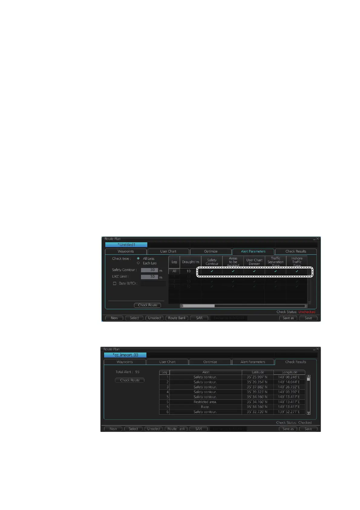 You can generate a list of chart alerts that are crossed by the planned route. This can