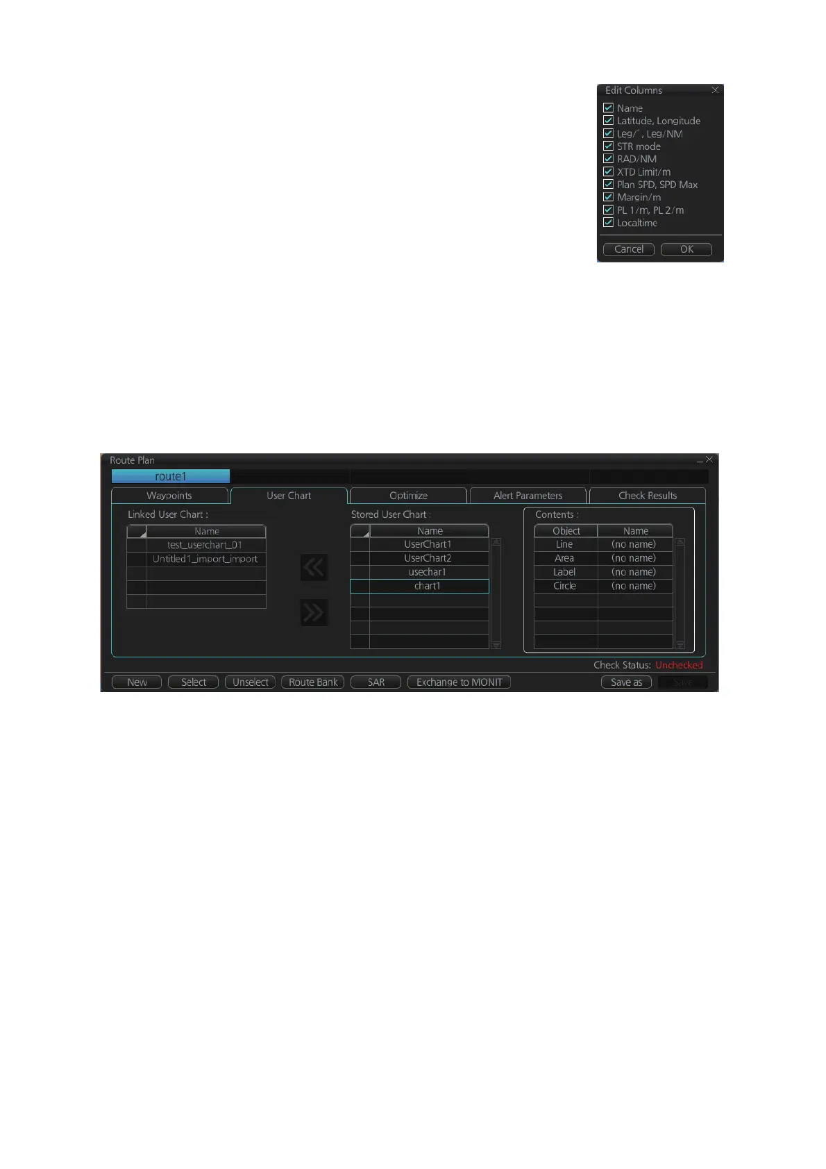 The [User Chart] page lets you link user charts to routes. To link a user chart, click the
