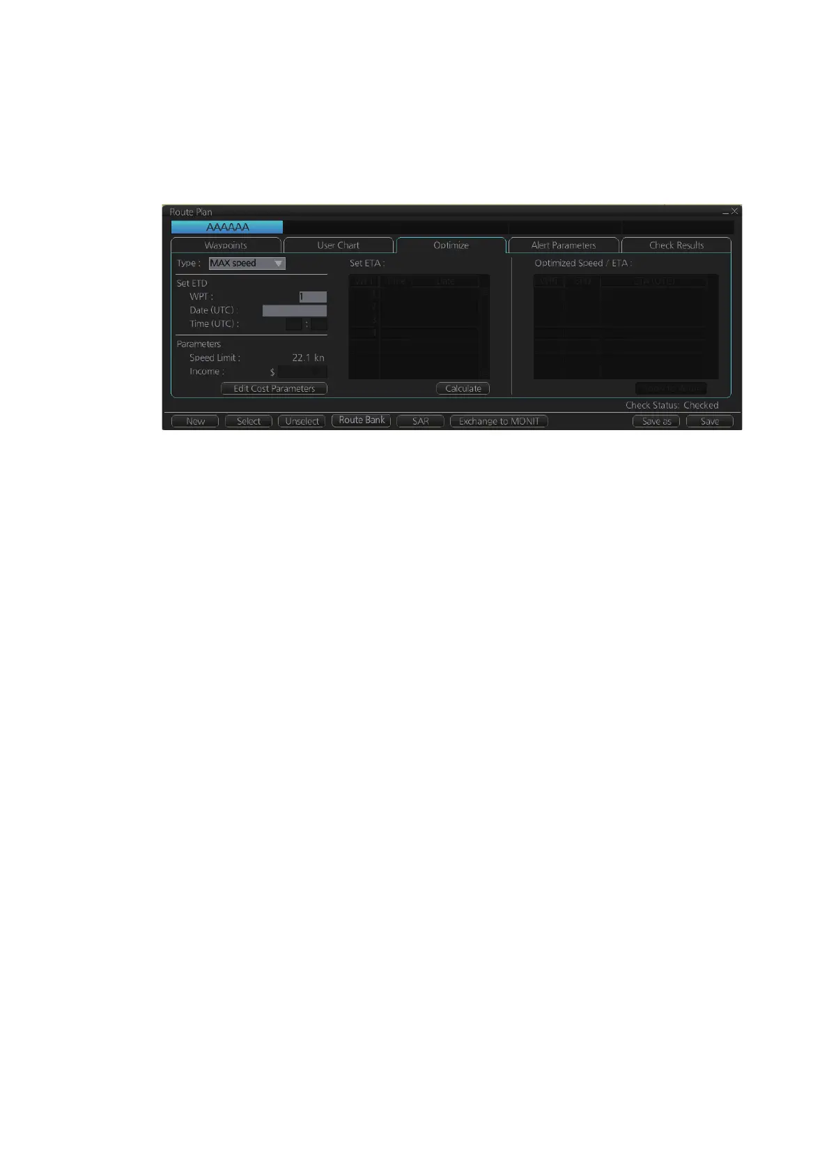 [Set ETD]: Set date, time and waypoint to start from.