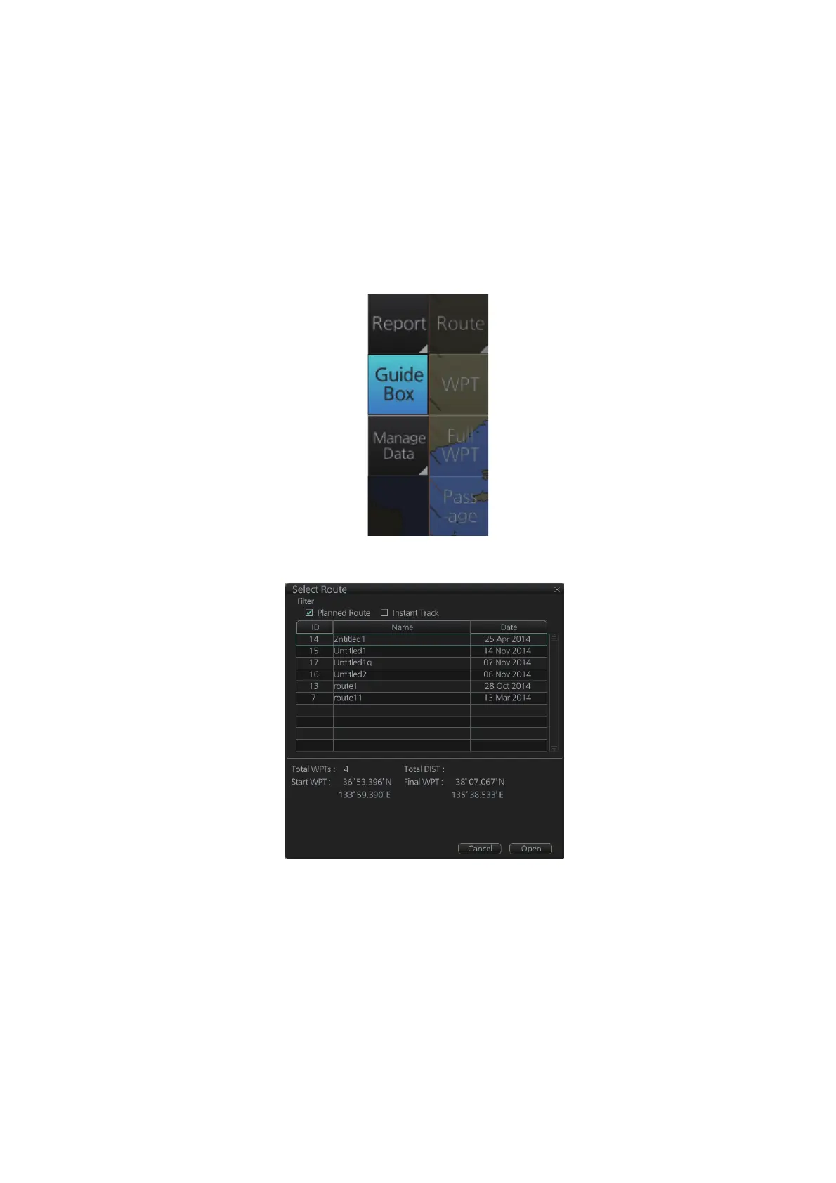 3. Select the appropriate route then click the [Open] button to show the selected re-
