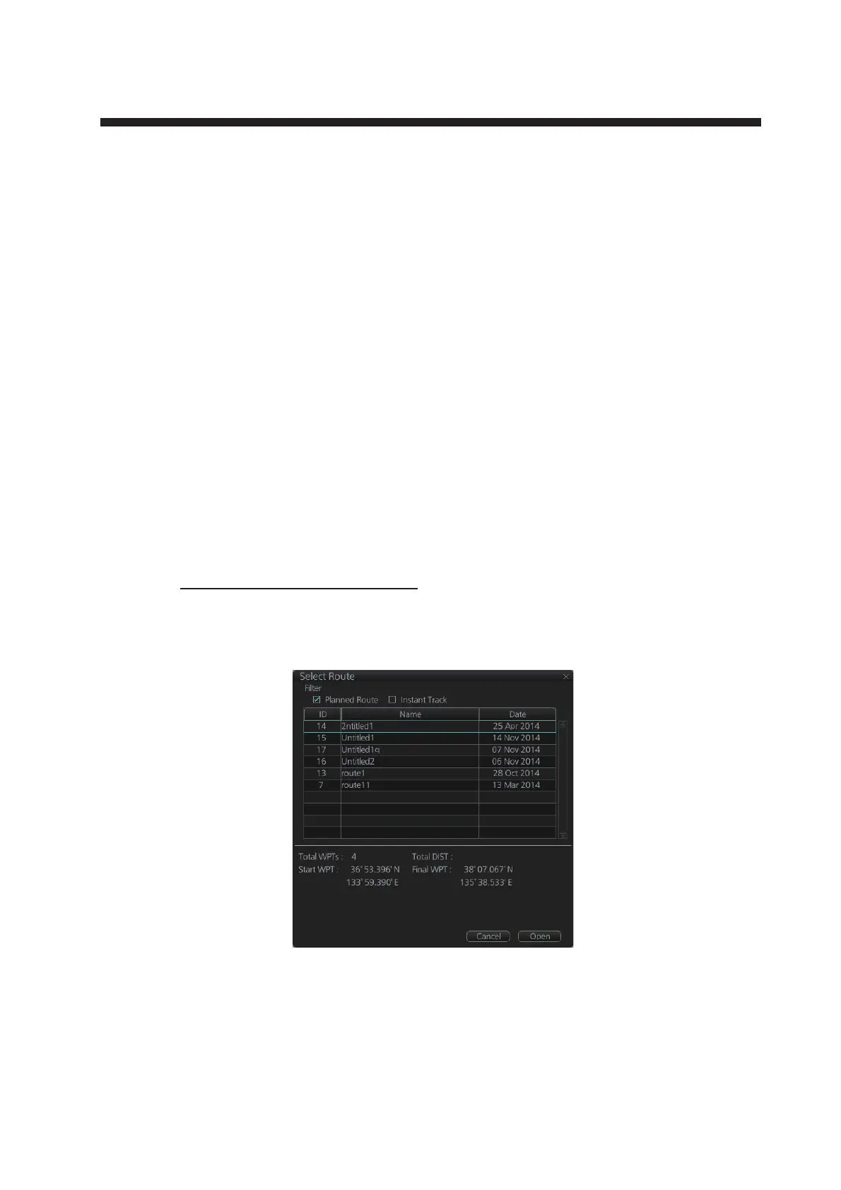 InstantAccess bar™. Click a route then click the [Open] button.