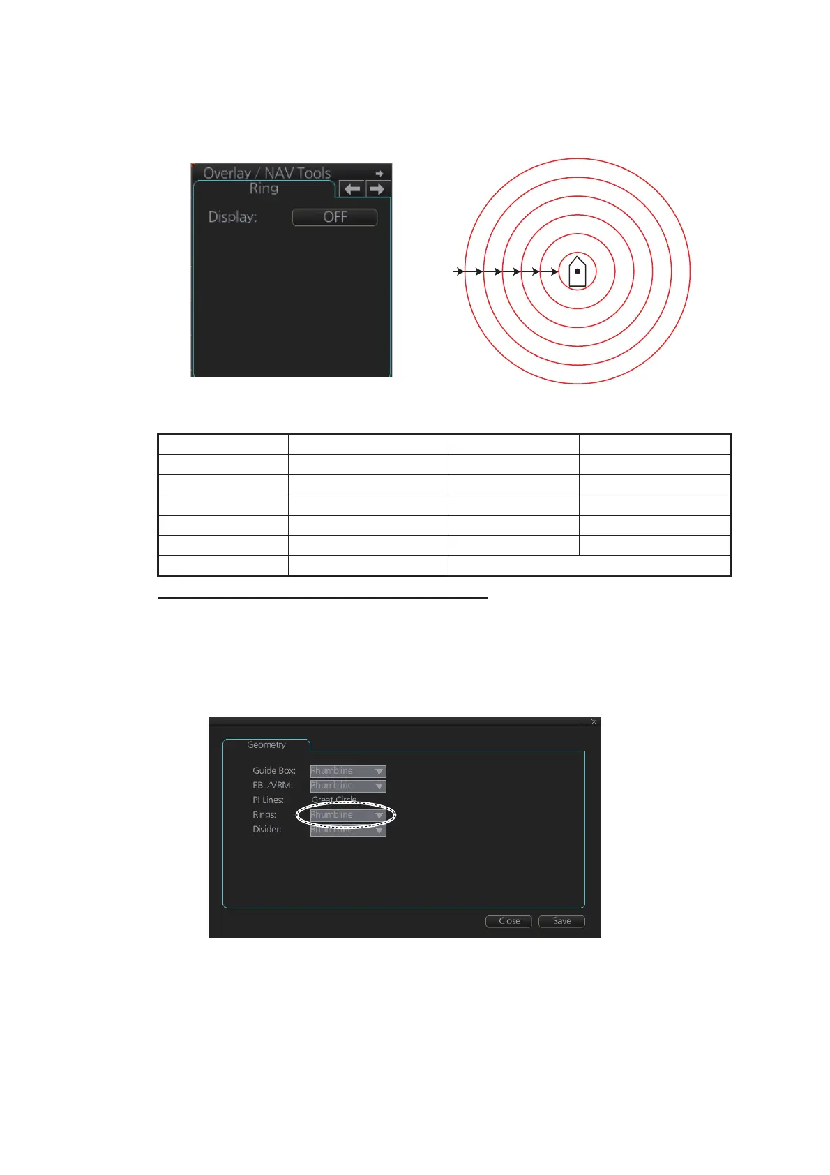 2. Select [Rhumbline] or [Great Circle] with the drop down list box for [Rings].