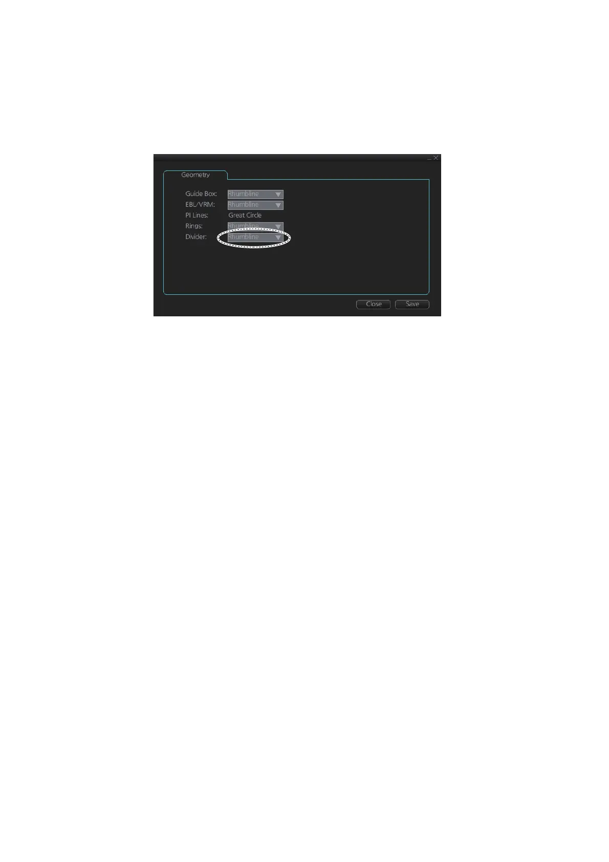 2. Select [Rhumbline] or [Great Circle] with the drop down list box for [Divider].
