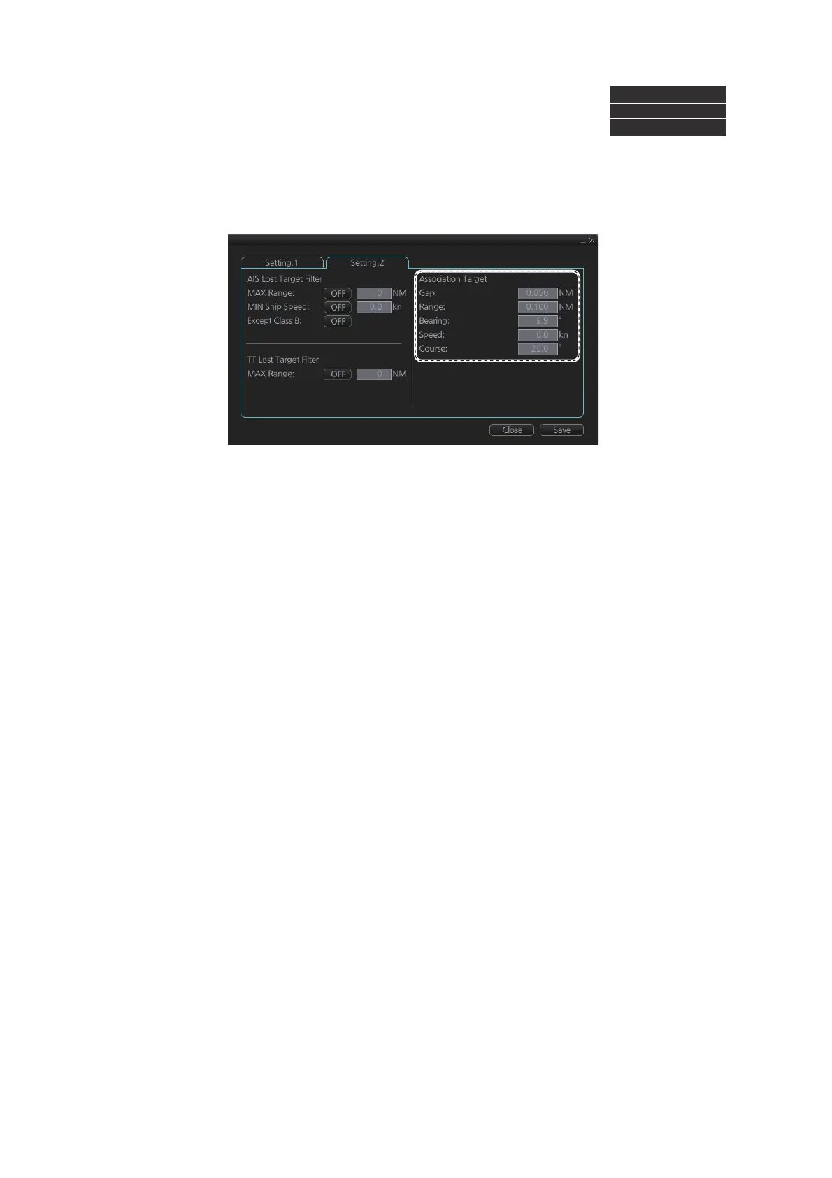 To set the criteria for association, right-click [AIS] on the [TT/AIS] page in the [NAV