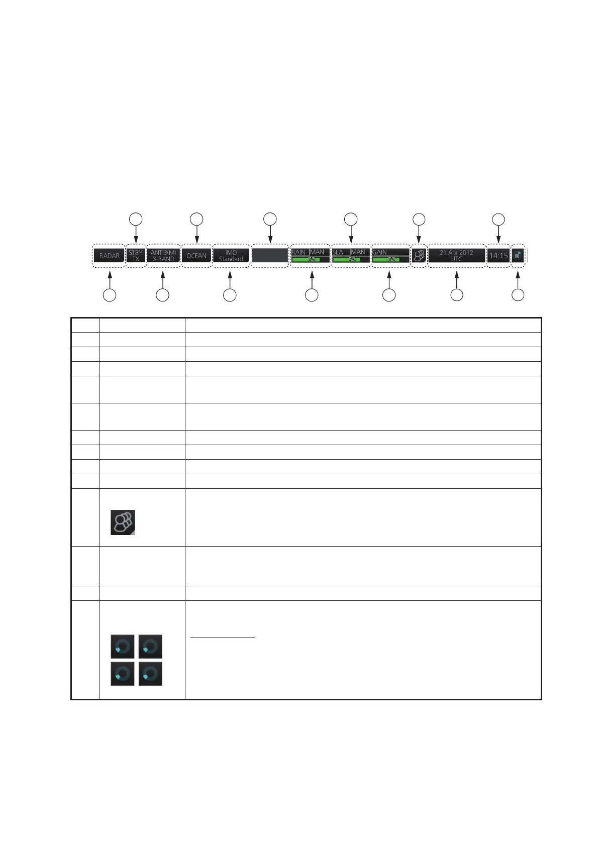 For a description of the Status bar used in the conning for radar, chart for radar mode,