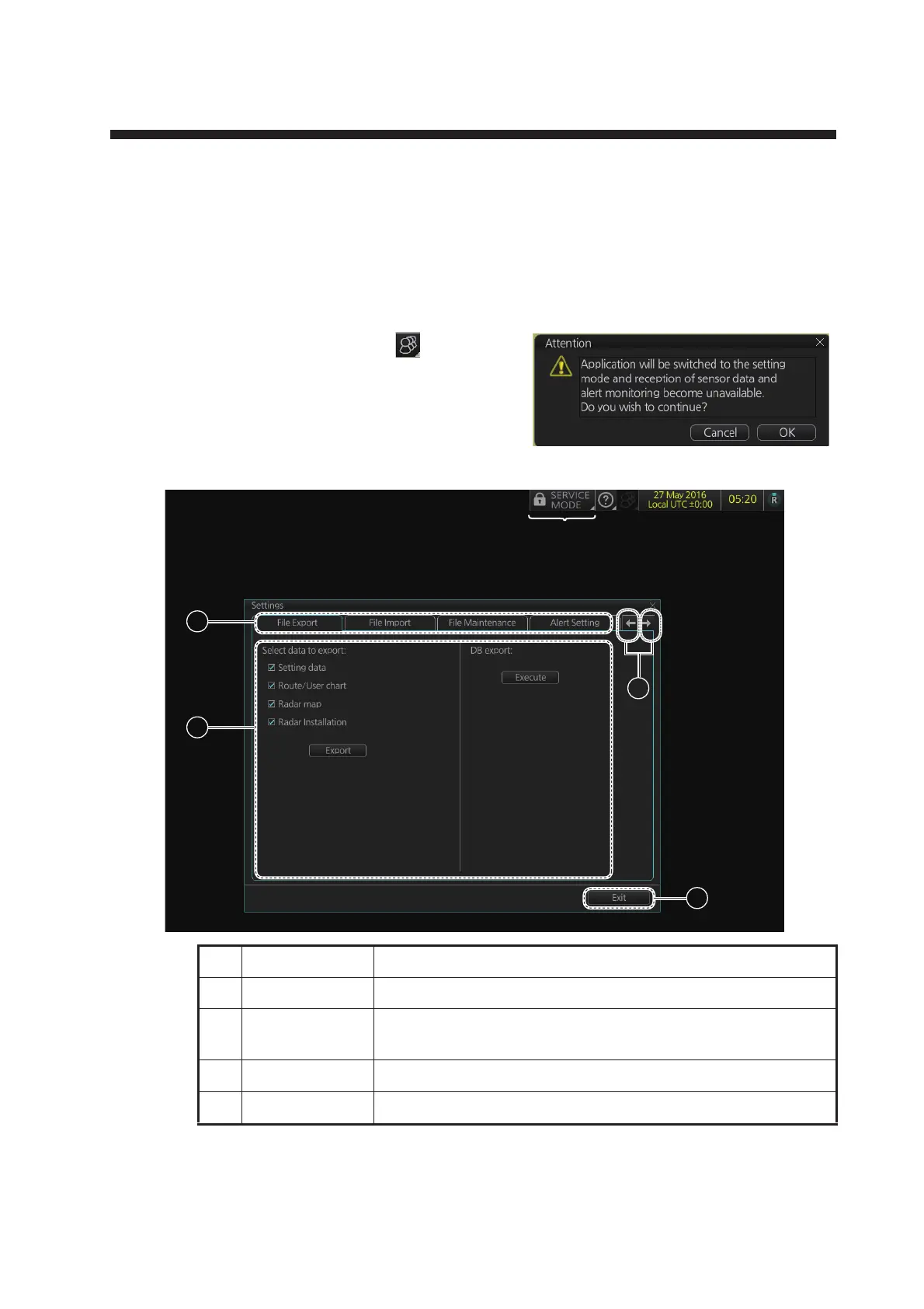 The [Settings] menu provides file import, export and maintenance, alert settings, test-