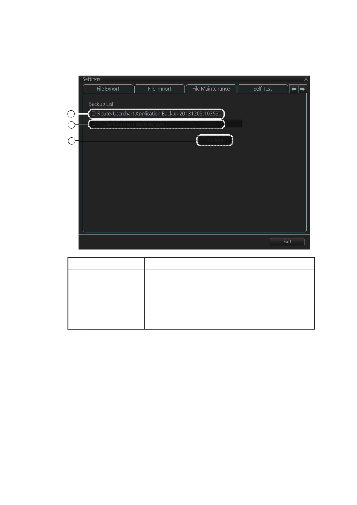 The [File Maintenance] page lets you restore the last-saved route/user chart applica-