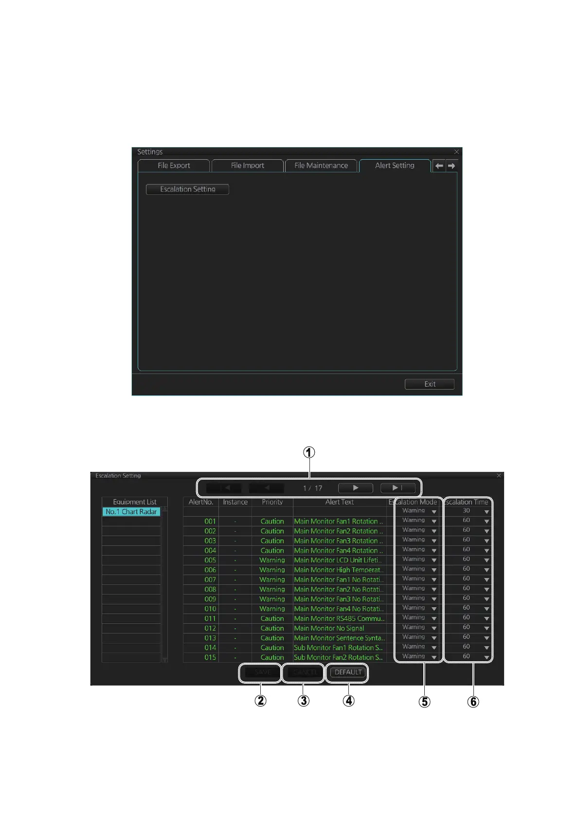Warning or Alarm, when the alert goes unacknowledged. Click the [Escalation Setting]