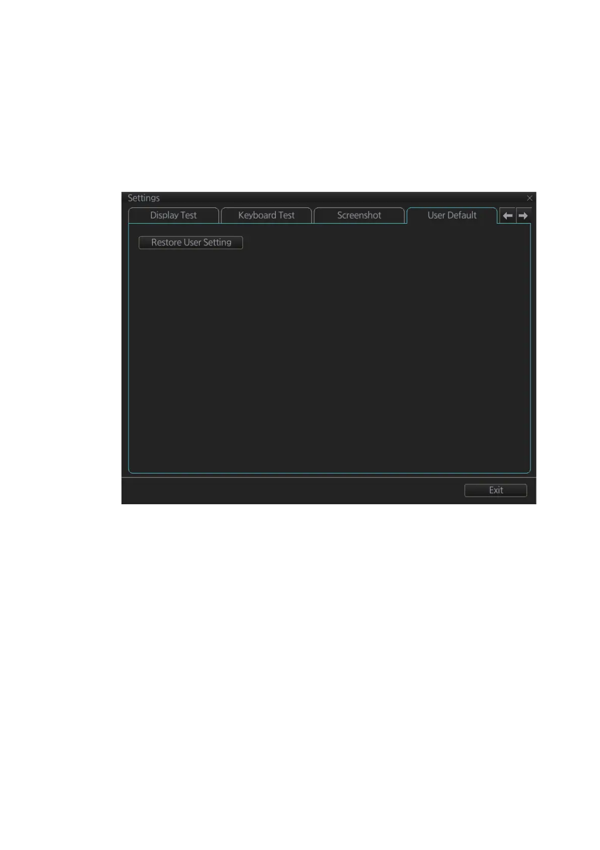 The [User Default] page restores all default settings for [Radar menu], [Chart menu],
