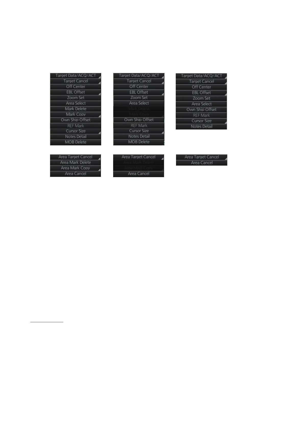 [EBL Offset]: Offset EBL1, EBL2 (to measure range and bearing between two targets).