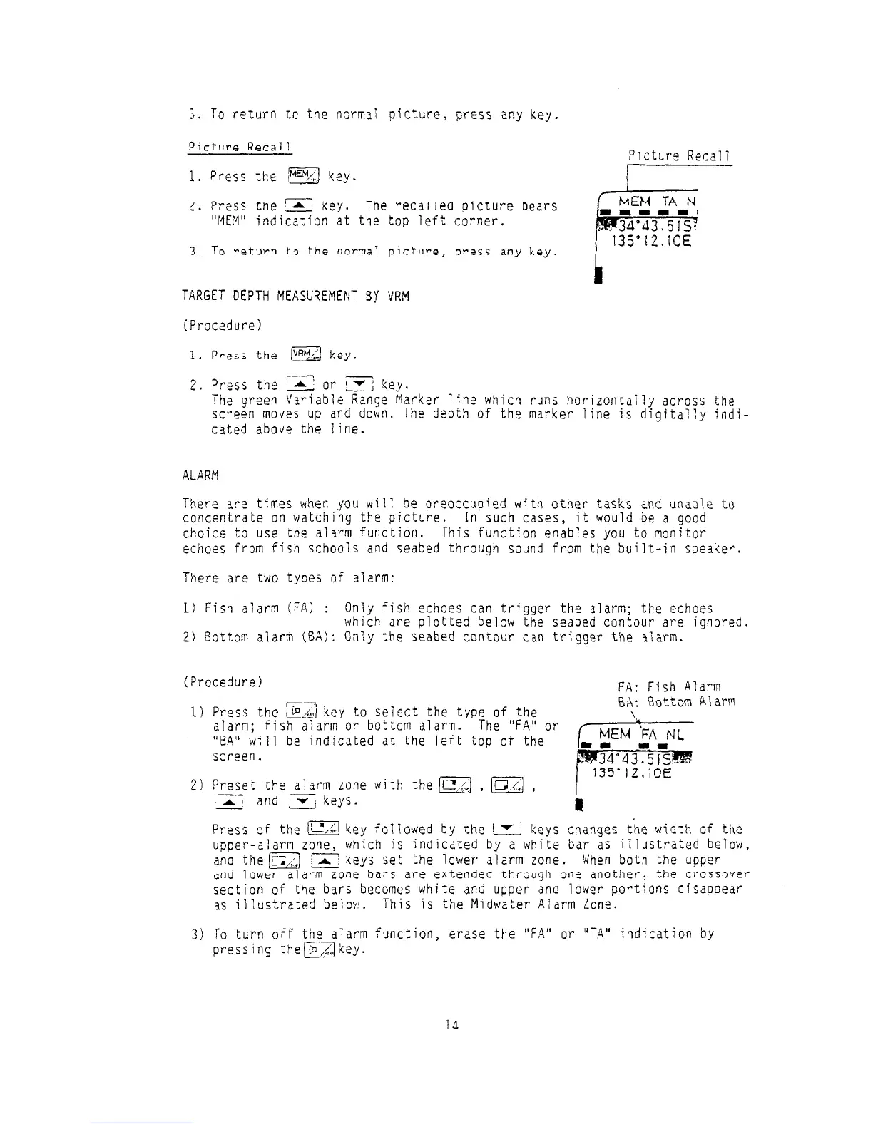 Furuno FCV-552 - TARGET DEPTH MEASUREMENT AND ALARMS