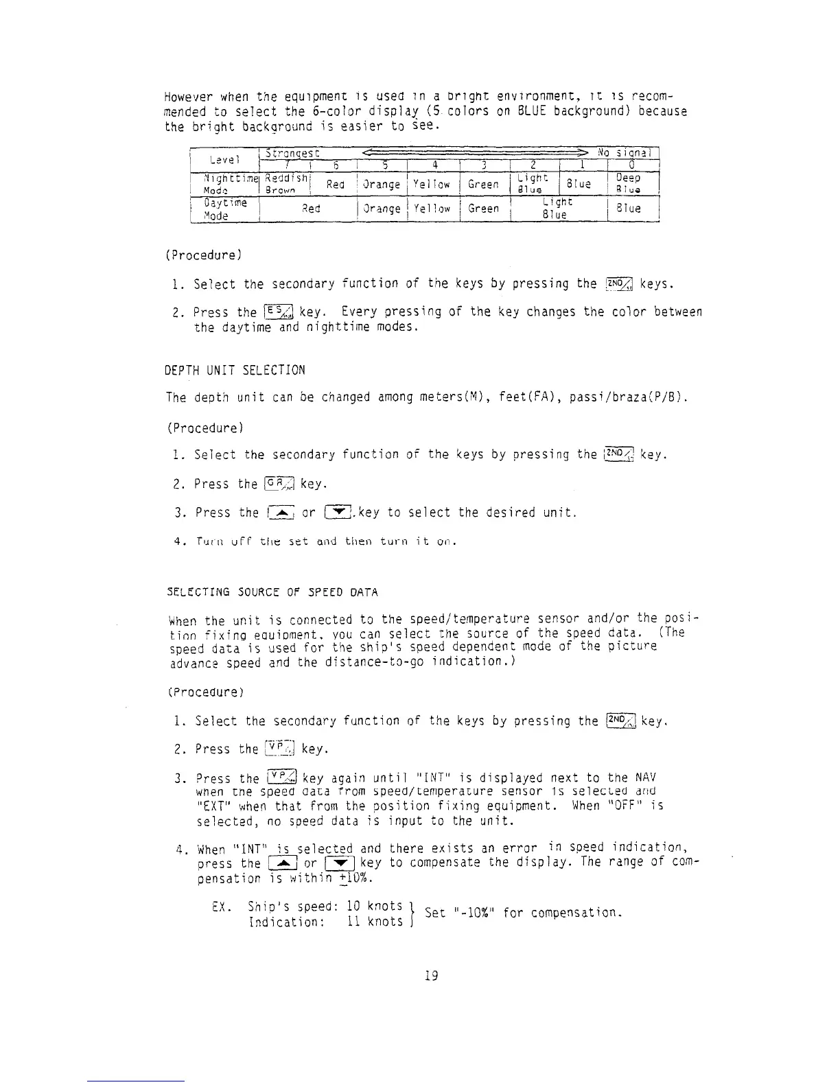 Furuno FCV-552 - Depth Unit Selection; Selecting Source of Speed Data