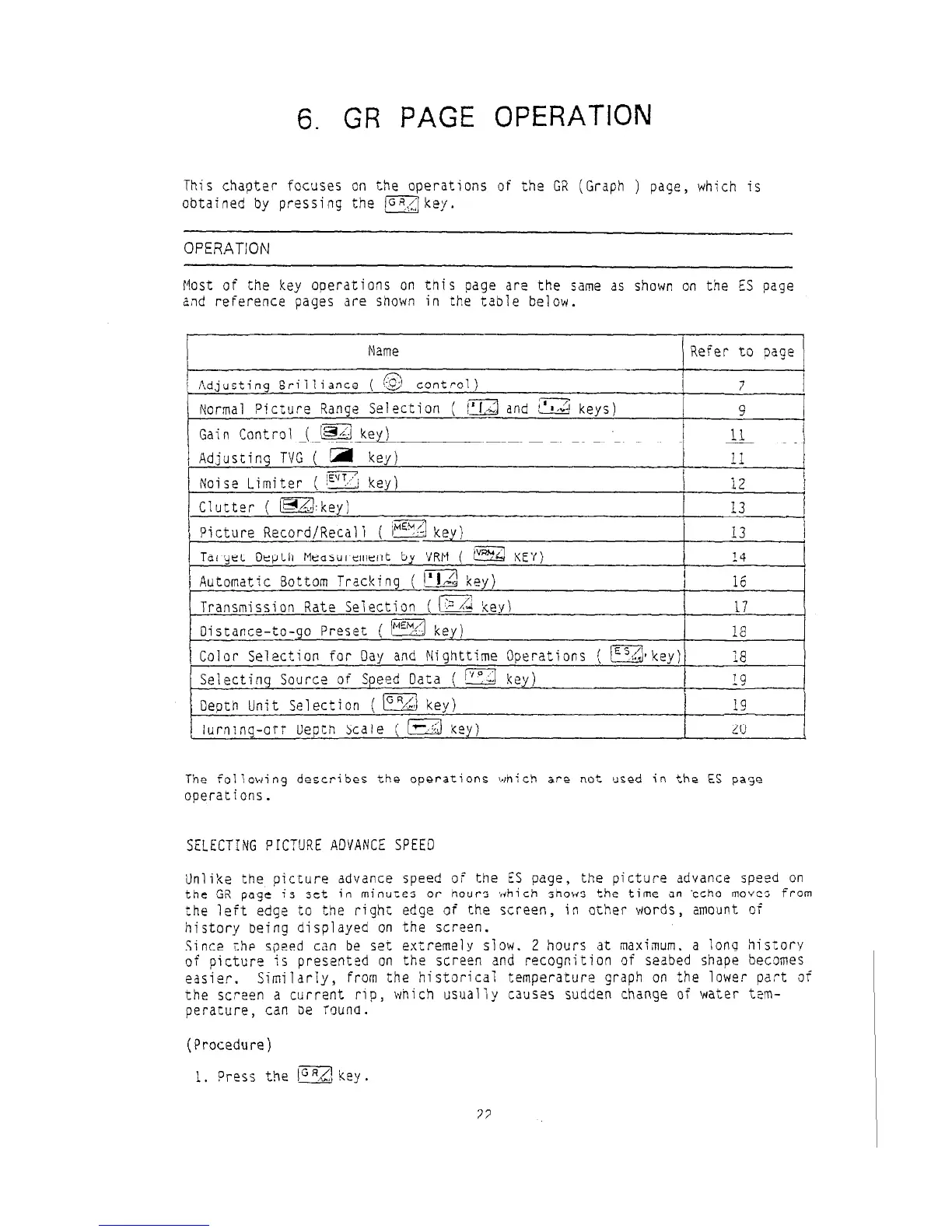Furuno FCV-552 - GR Page Operation; Selecting Picture Advance Speed