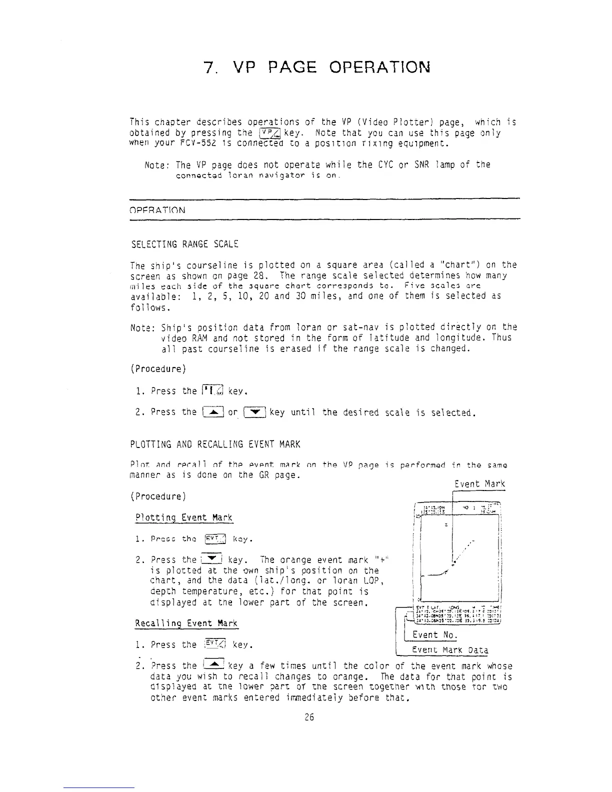 Furuno FCV-552 - VP Page Operation; Selecting Range Scale; Plotting Event Mark