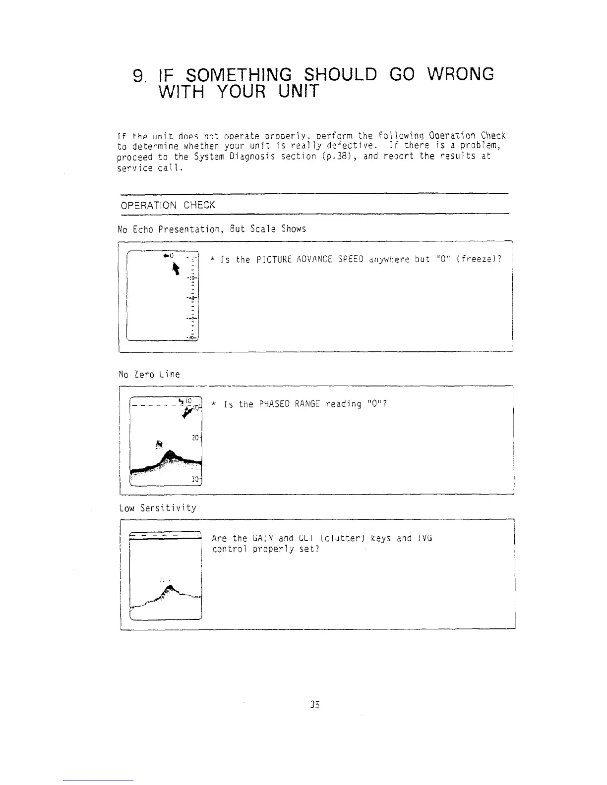 Furuno FCV-552 - 9. TROUBLESHOOTING; OPERATION CHECK