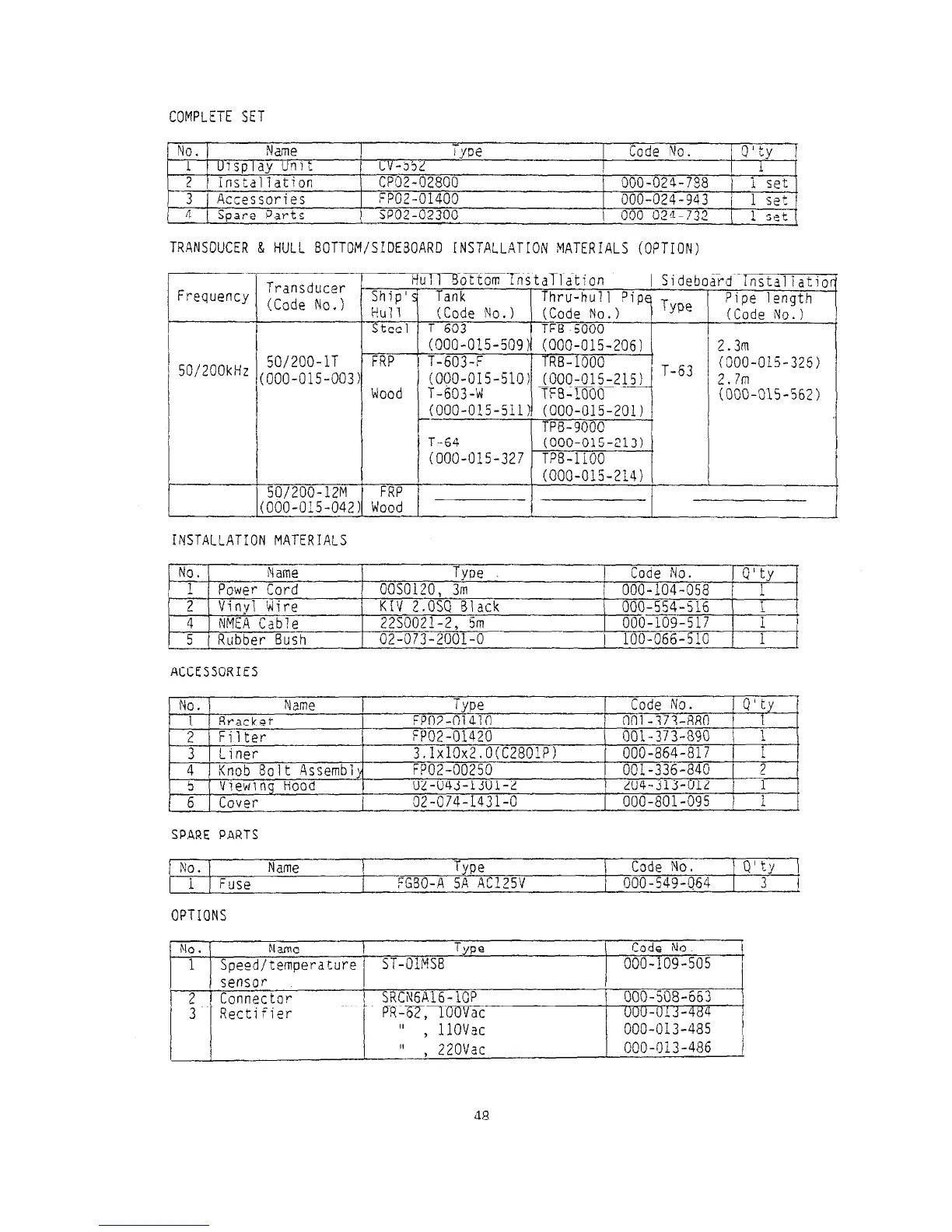 Furuno FCV-552 - Complete Set; Installation Materials; Accessories; Spare Parts