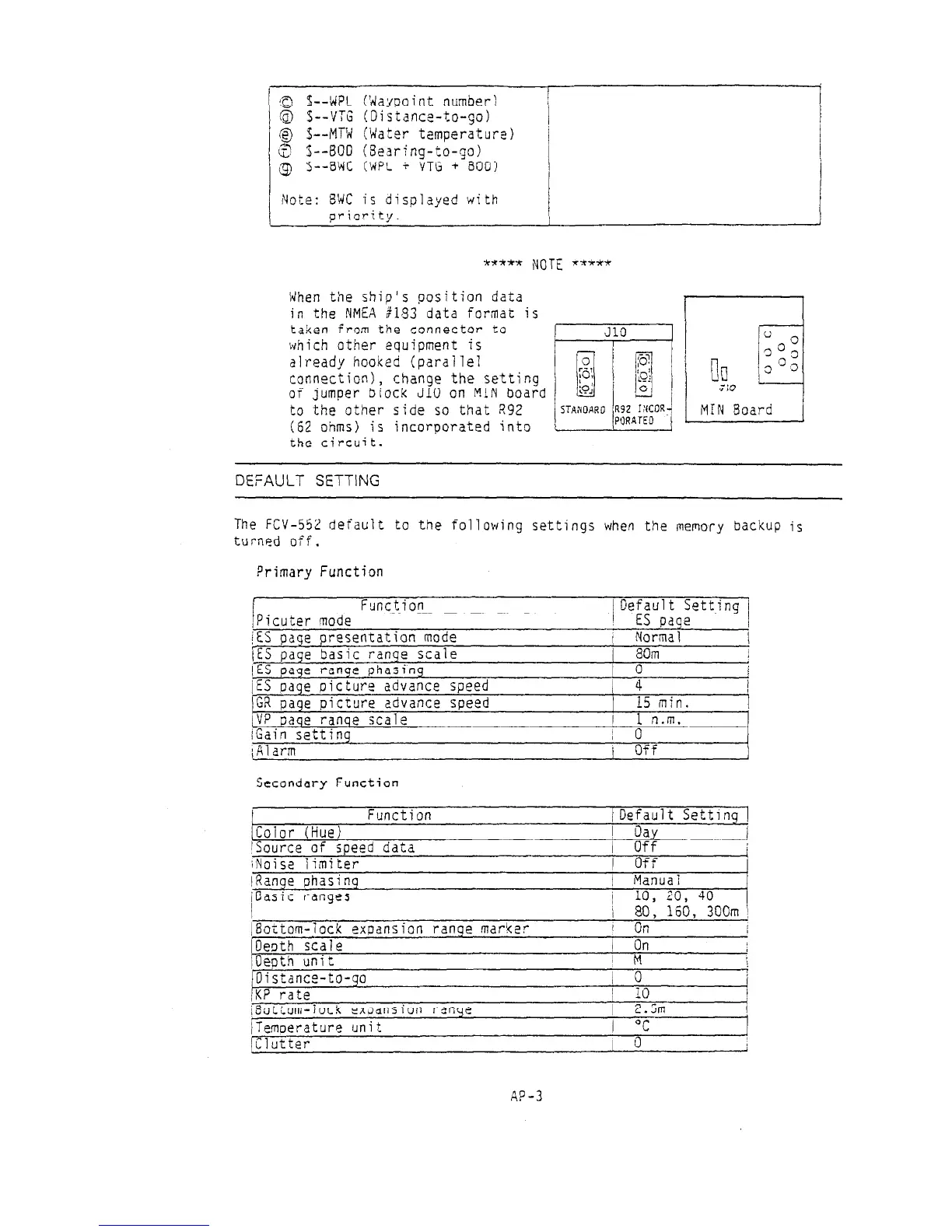 Furuno FCV-552 - Default Setting; Primary Information; Secondary Function
