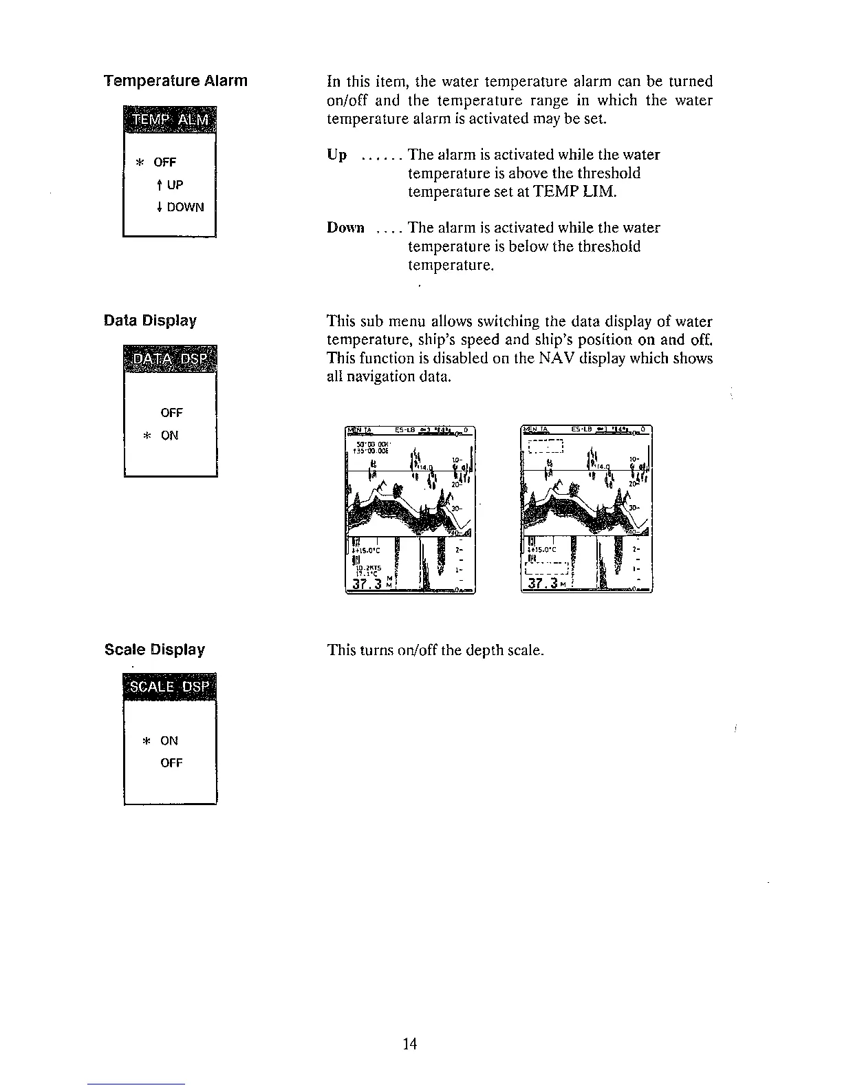 Furuno FCV-561 - Temperature Alarm; Data Display; Scale Display