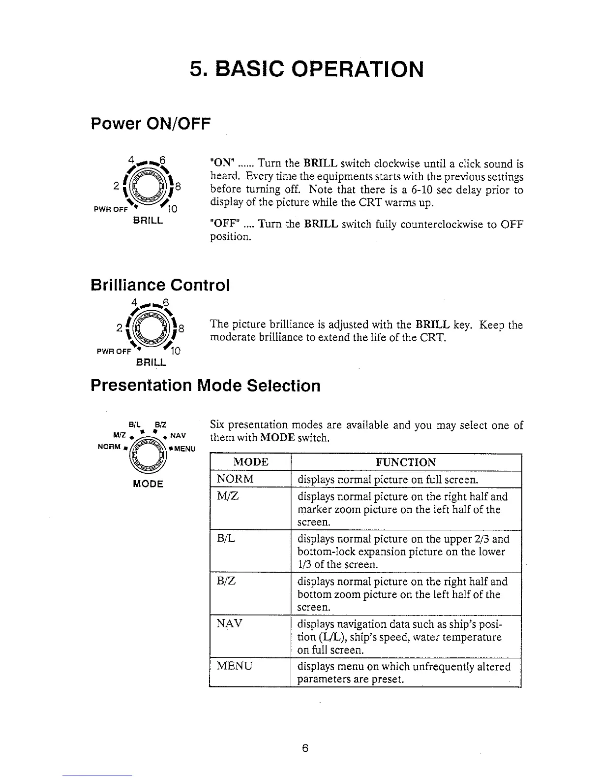 Furuno FCV-581 - 5. Basic Operation; Presentation Mode Selection