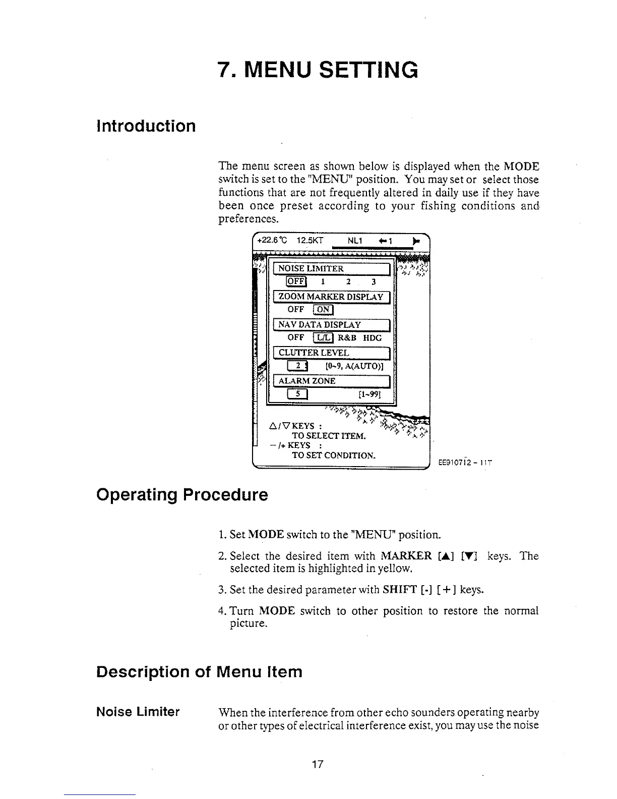 Furuno FCV-581 - 7. Menu Setting; Menu Configuration Options