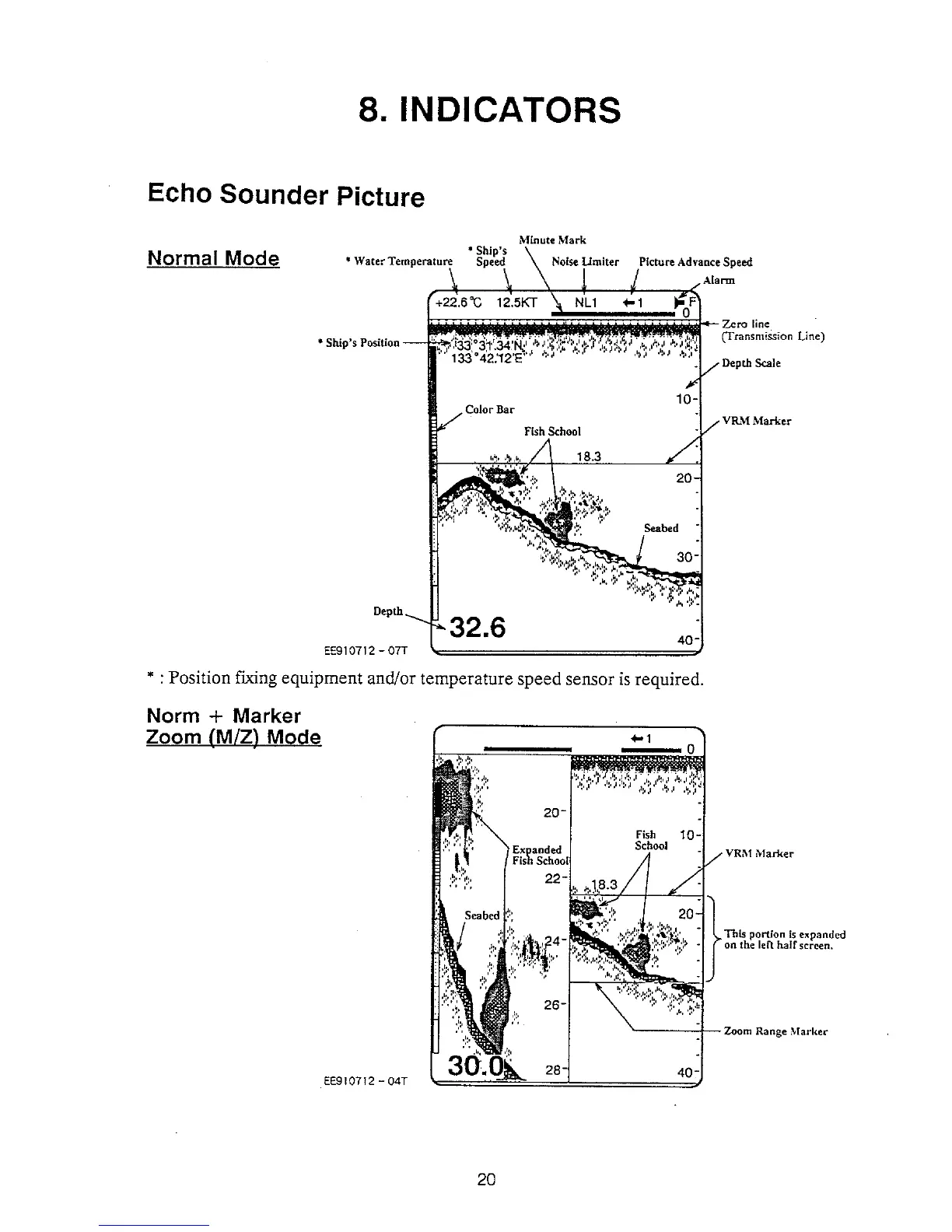 Furuno FCV-581 - 8. Indicators; Echo Sounder Picture Modes