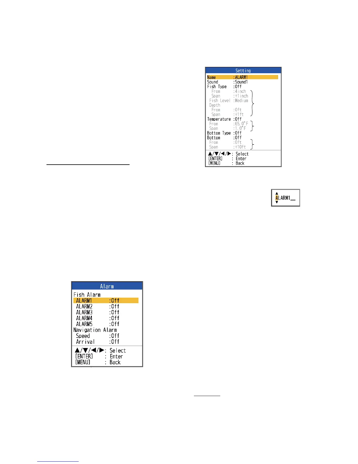 Multiple fish alarms (ALARM1 - ALARM5, de-