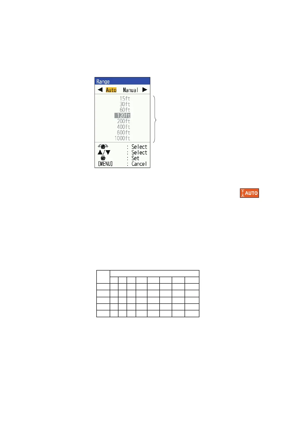 Range. In case the sea bottom is deeper than the largest setting of Auto Range,
