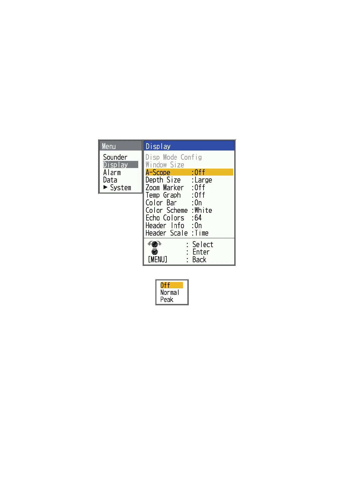 Note: The A-scope display is only available with the high frequency display in dual fre-