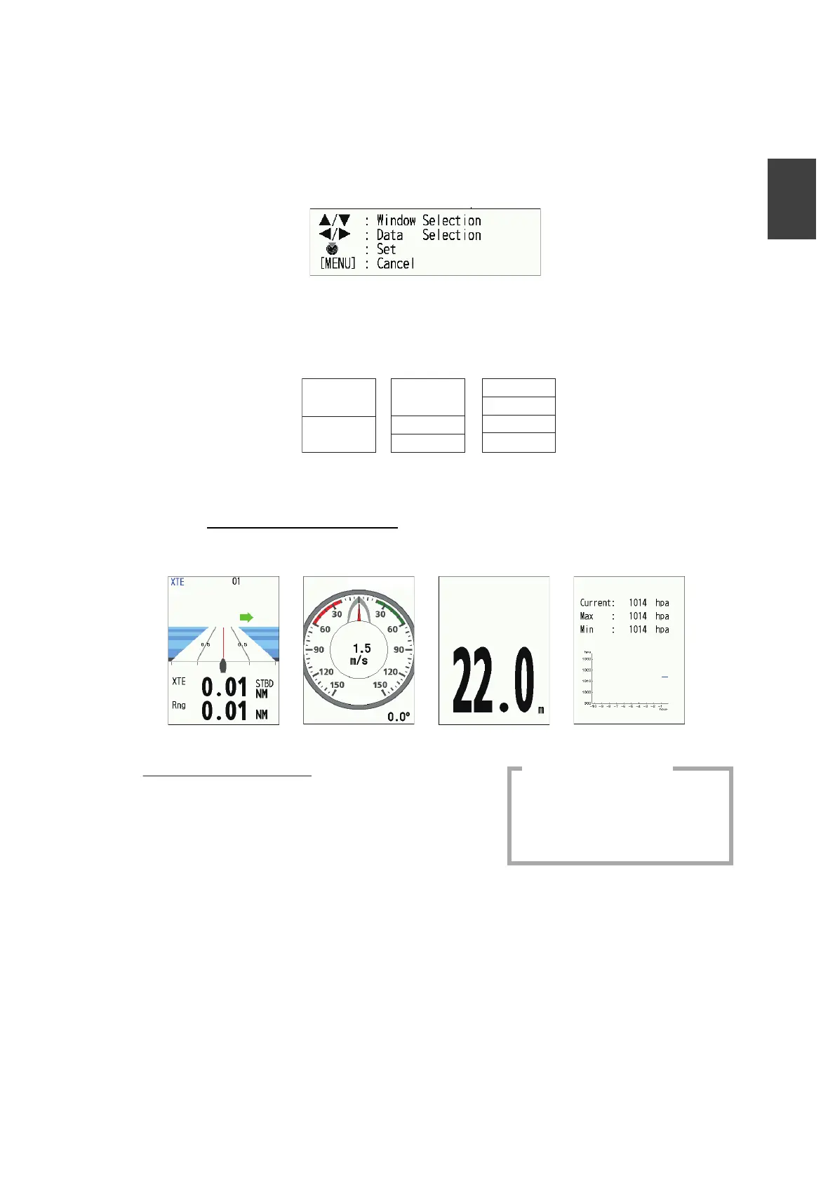 XTE (course), wind speed and direction, depth, atmospheric pressure