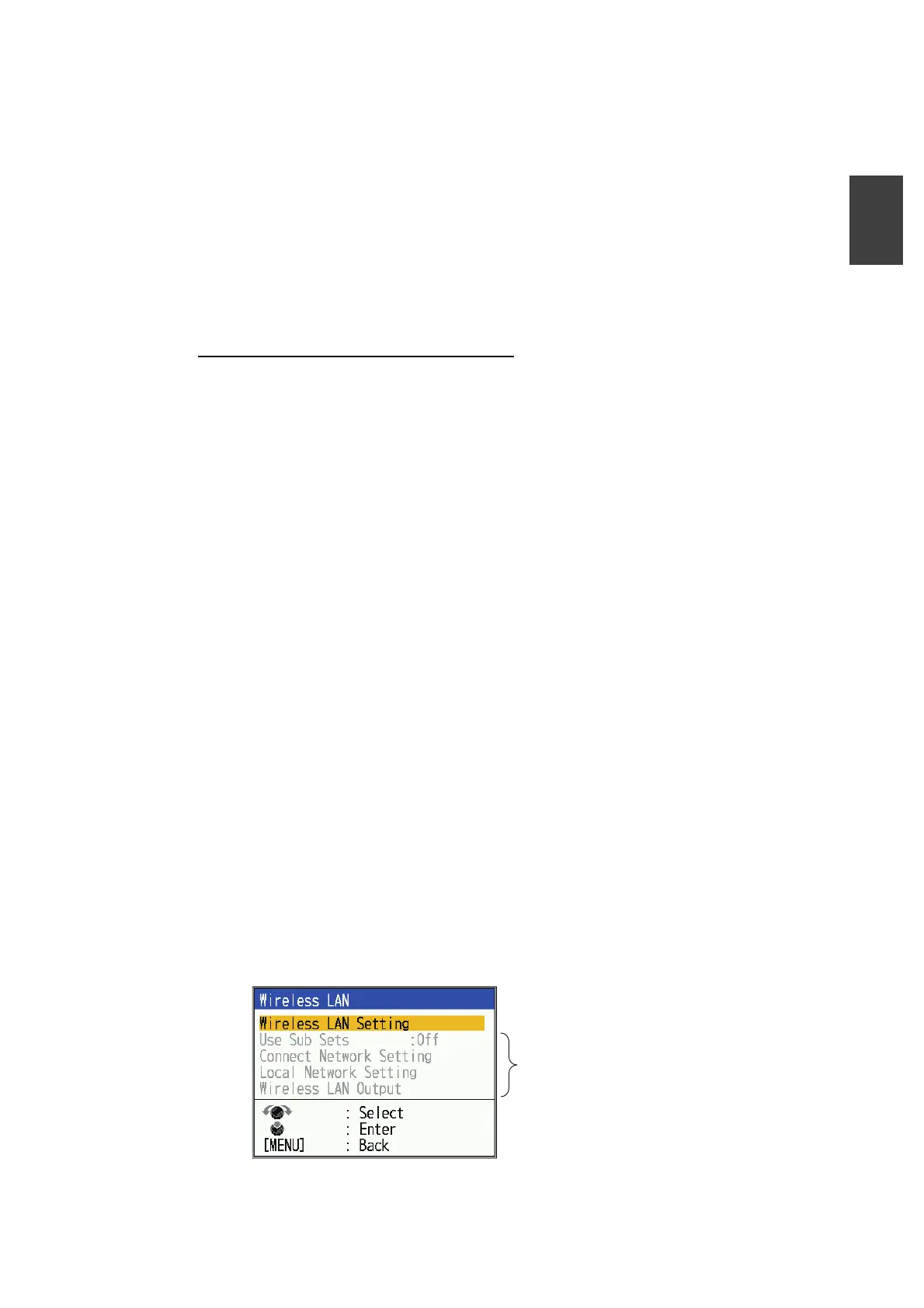 3. Select [Wireless LAN] and press the KNOB.