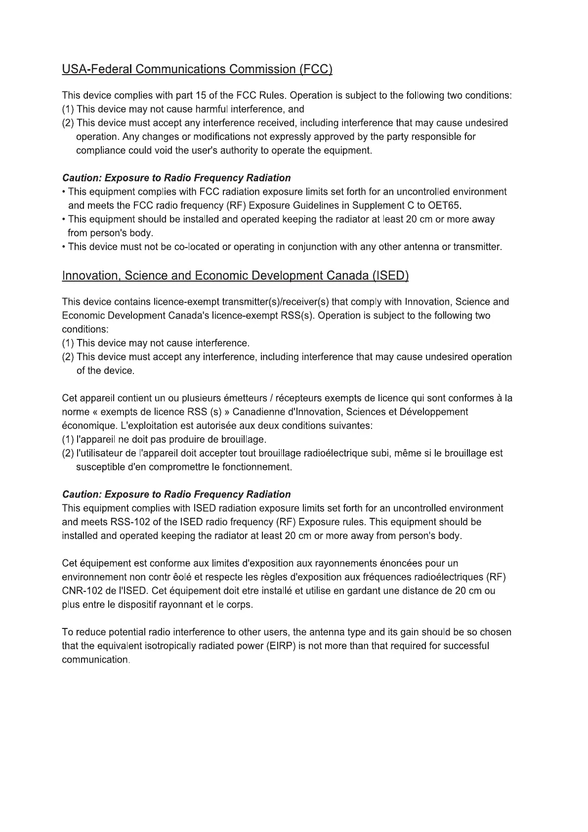 Furuno FCV-600 - USA-Federal Communications Commission (FCC); Innovation, Science and Economic Development Canada (ISED)