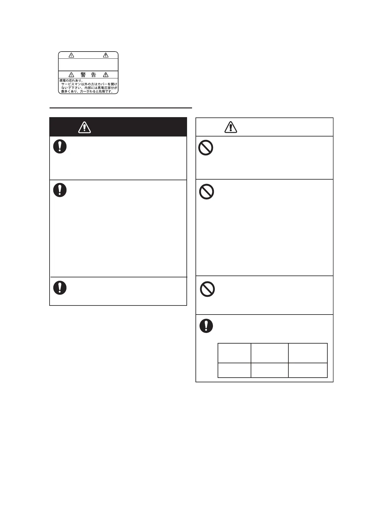 Fire or electrical shock can result if the
