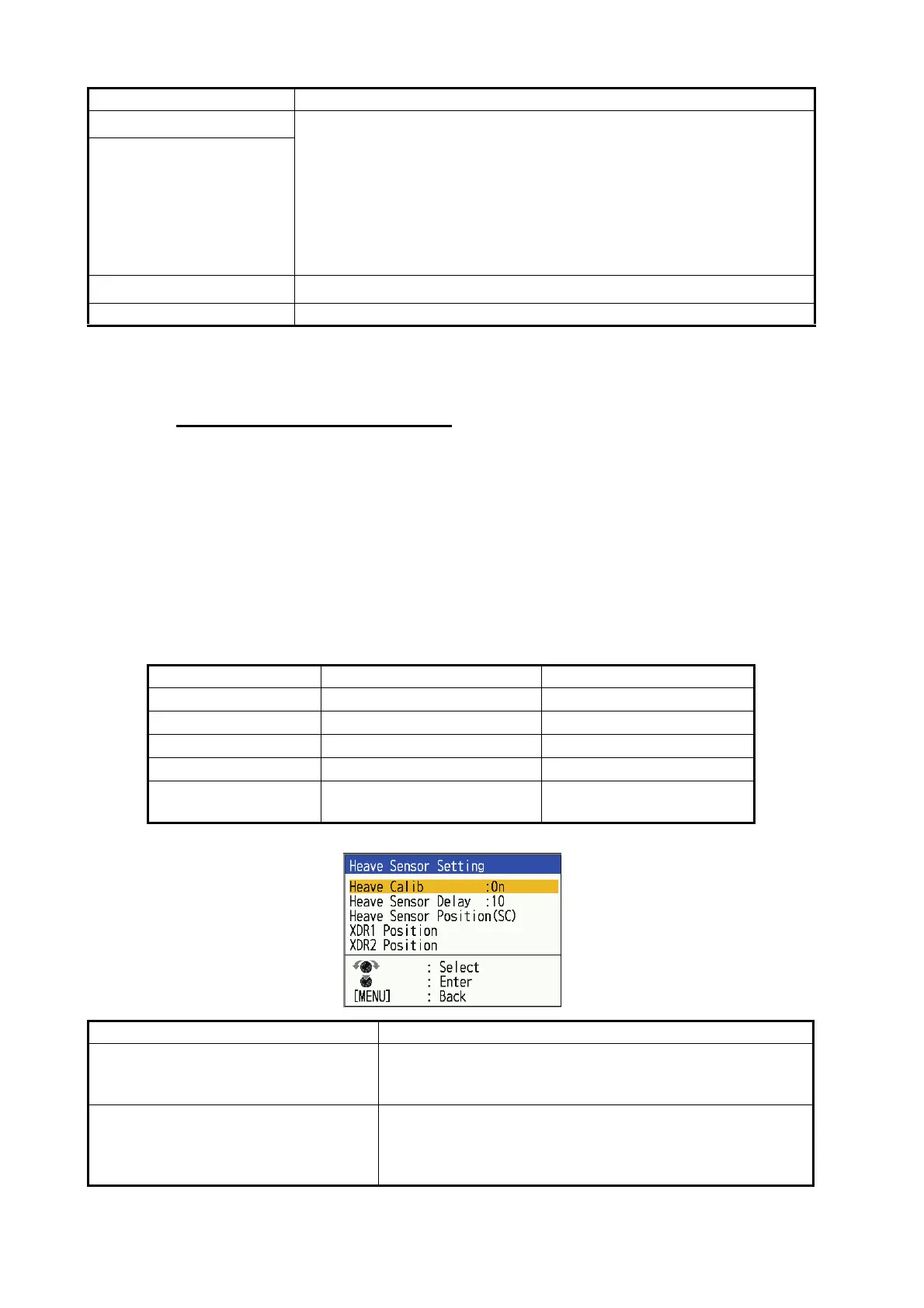 [Heave Sensor Delay] Enabled when [On] is selected for [Heave Calib] above. Set
