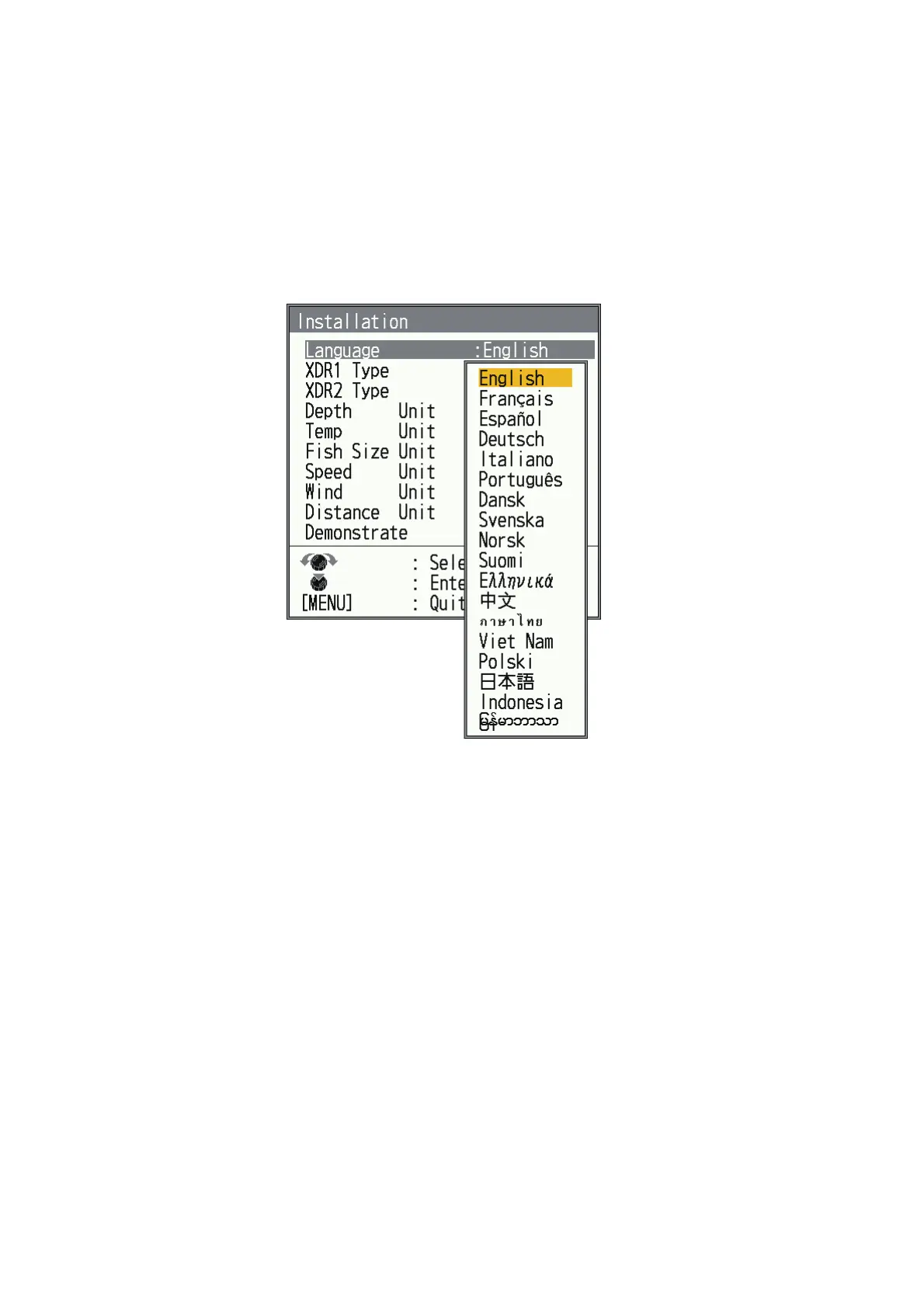 5. Select the appropriate language, then press the MENU/ESC key twice.