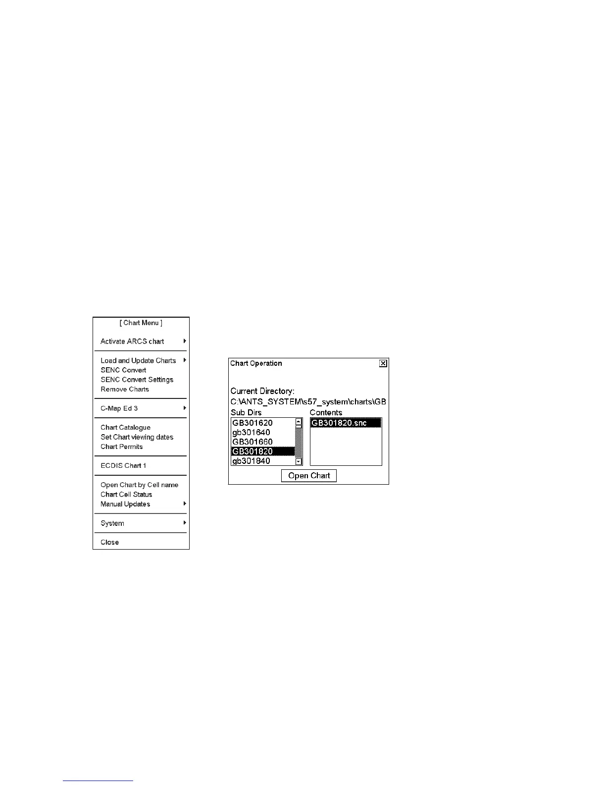 To activate a specific S57 chart cell onto the display, use Open Chart by Cell name menu in the Chart menu as